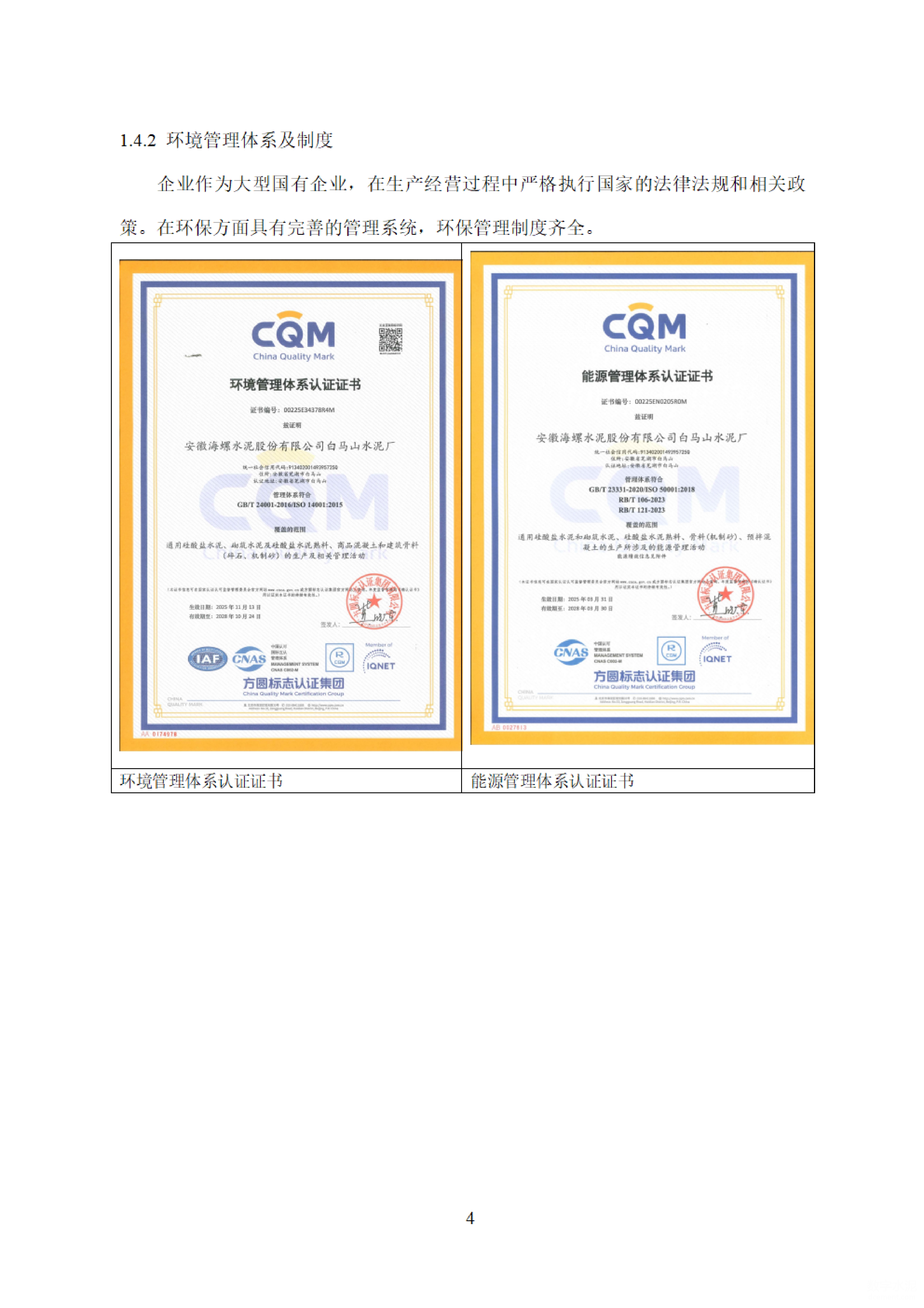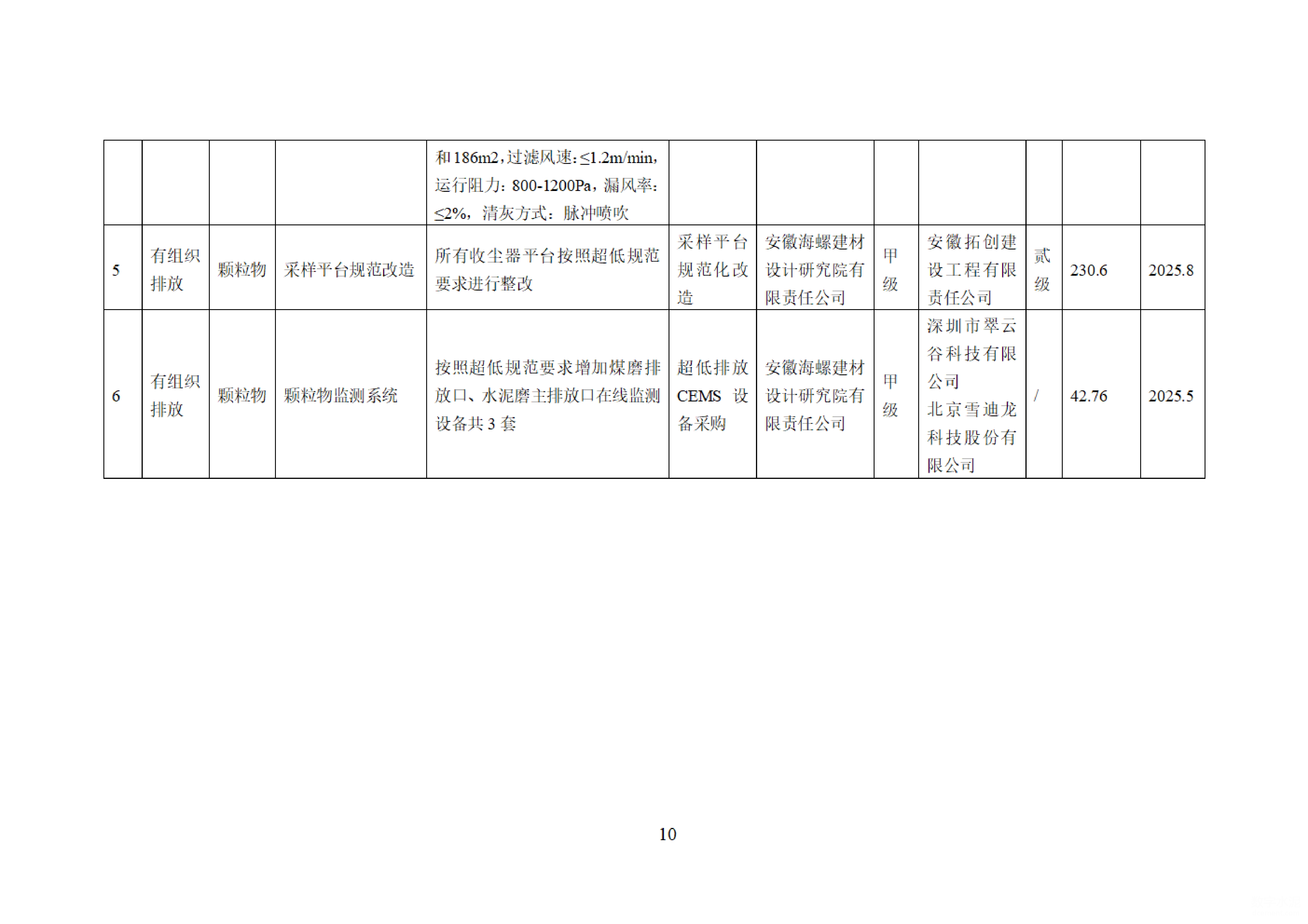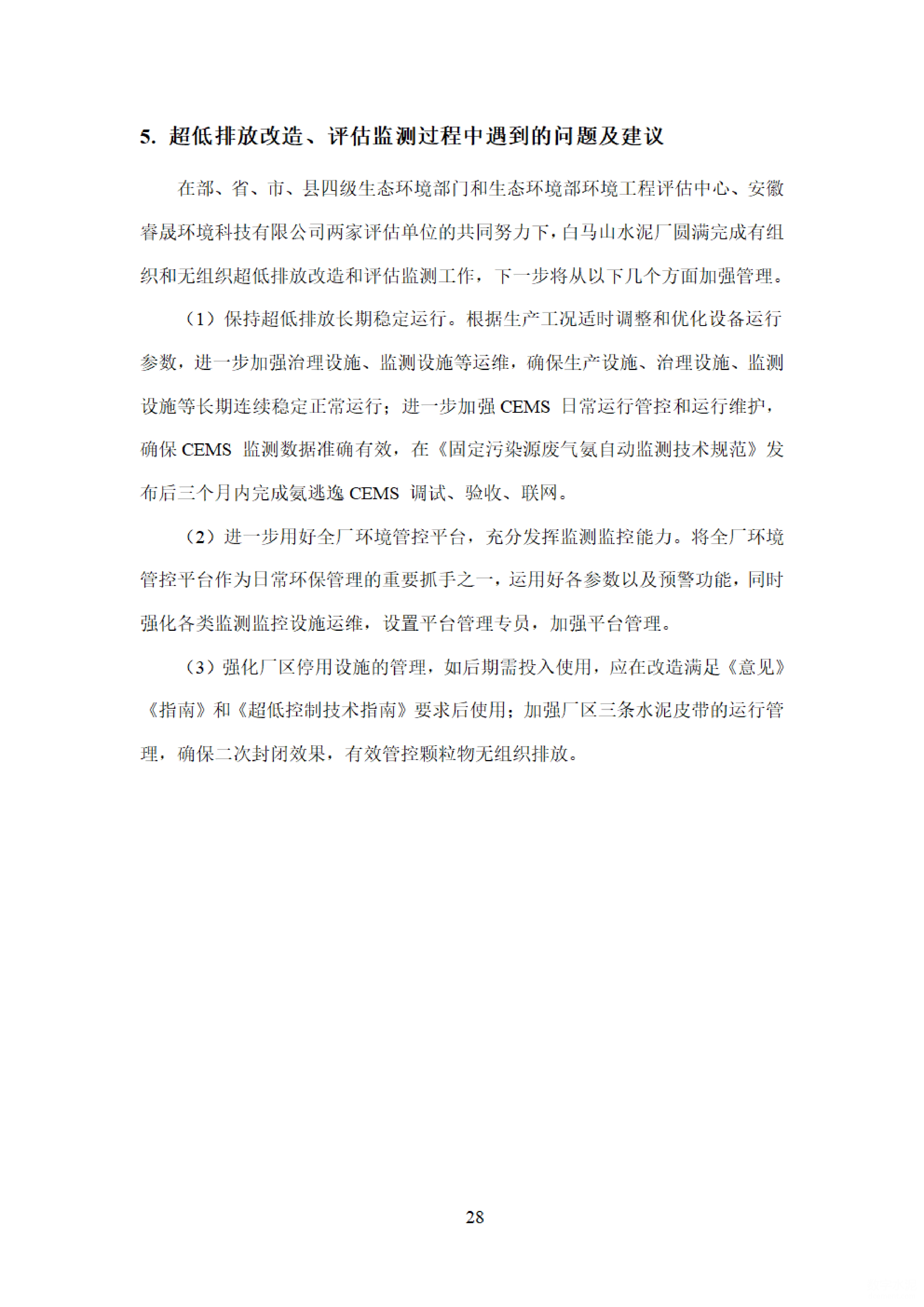 安徽海螺水泥股份有限公司白馬山水泥廠有組織、無組織部分超低排放改造評估監測進展情況公示內容