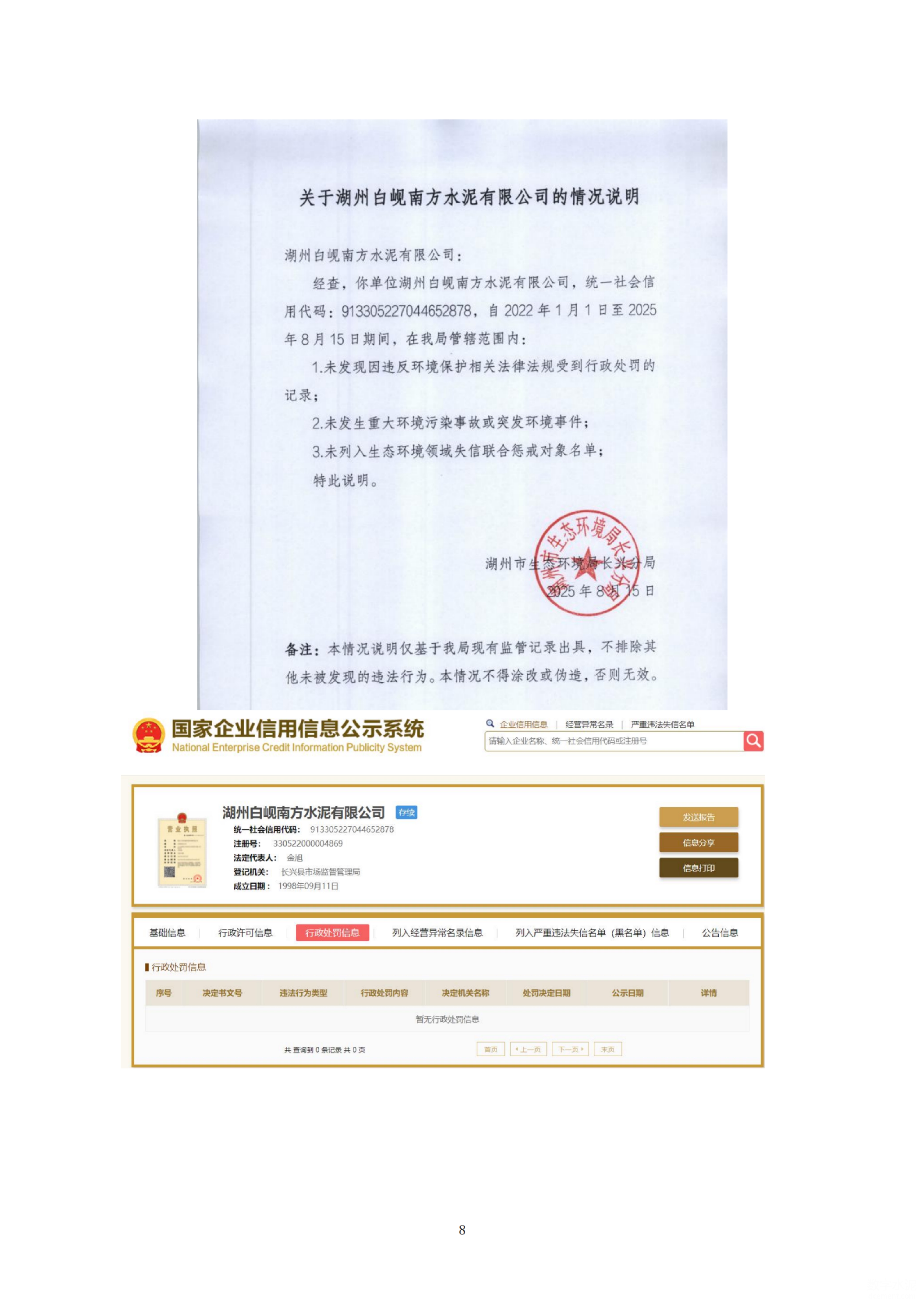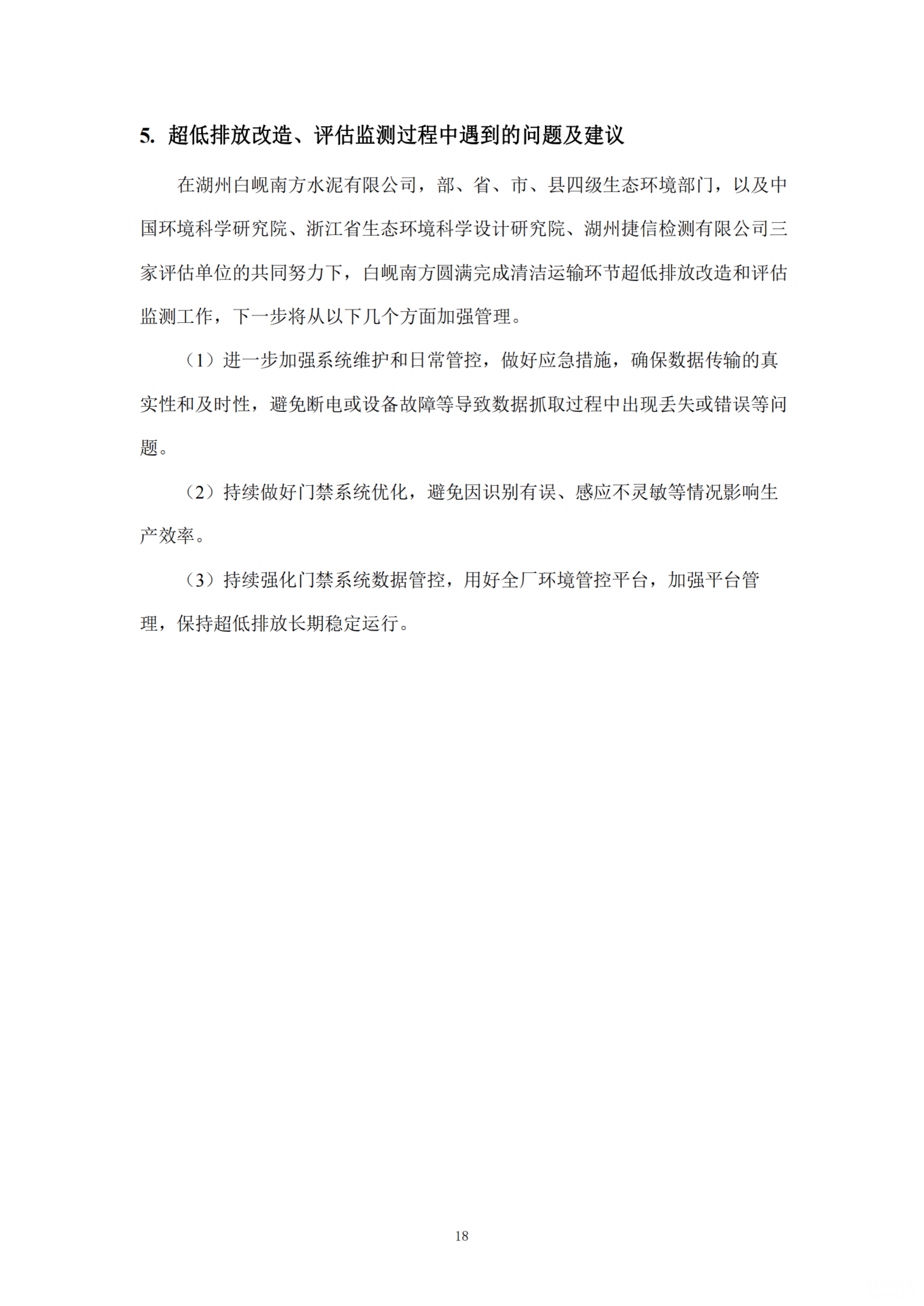 湖州白峴南方水泥有限公司清潔運(yùn)輸部分超低排放改造和評(píng)估監(jiān)測(cè)進(jìn)展情況公示內(nèi)容