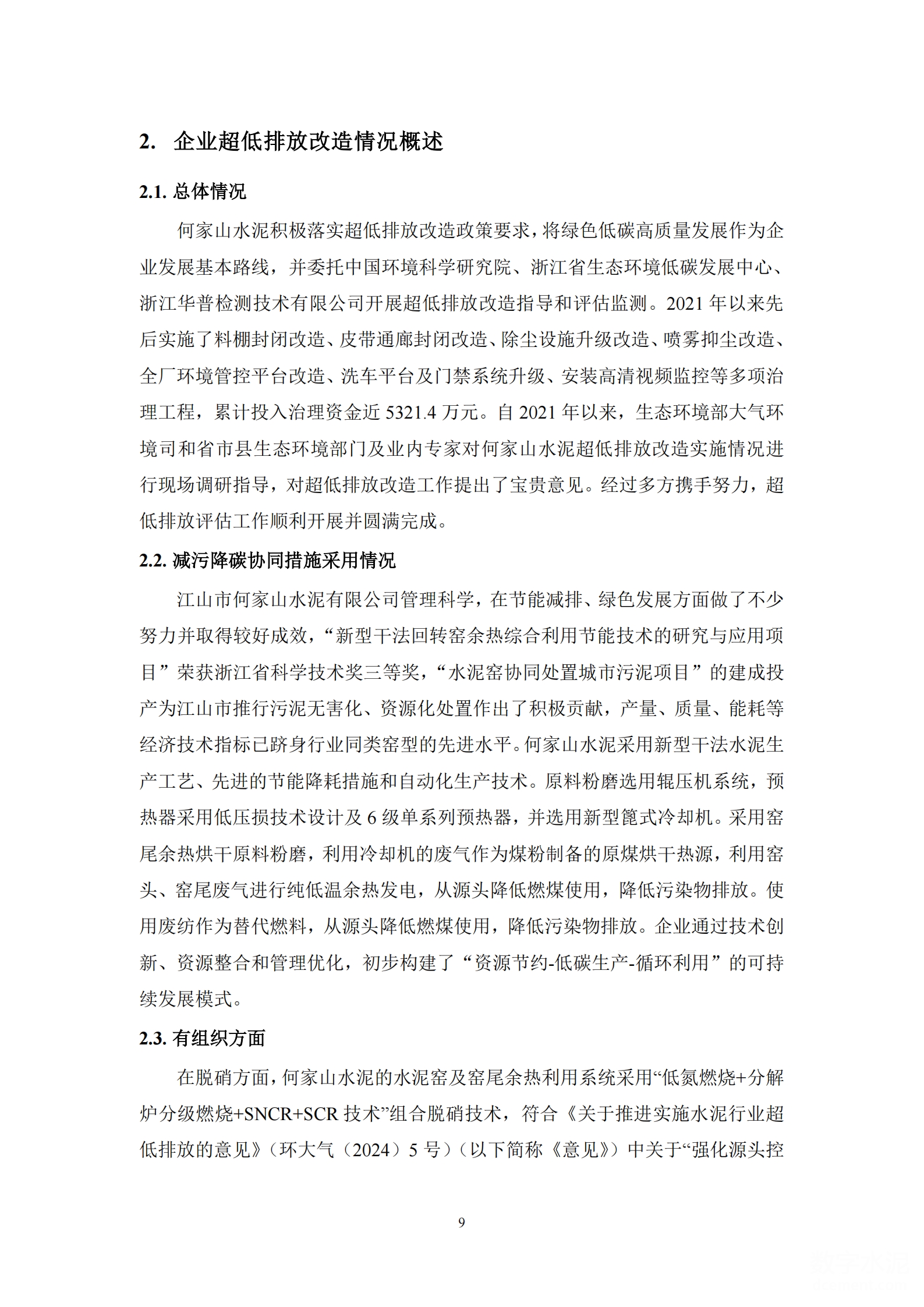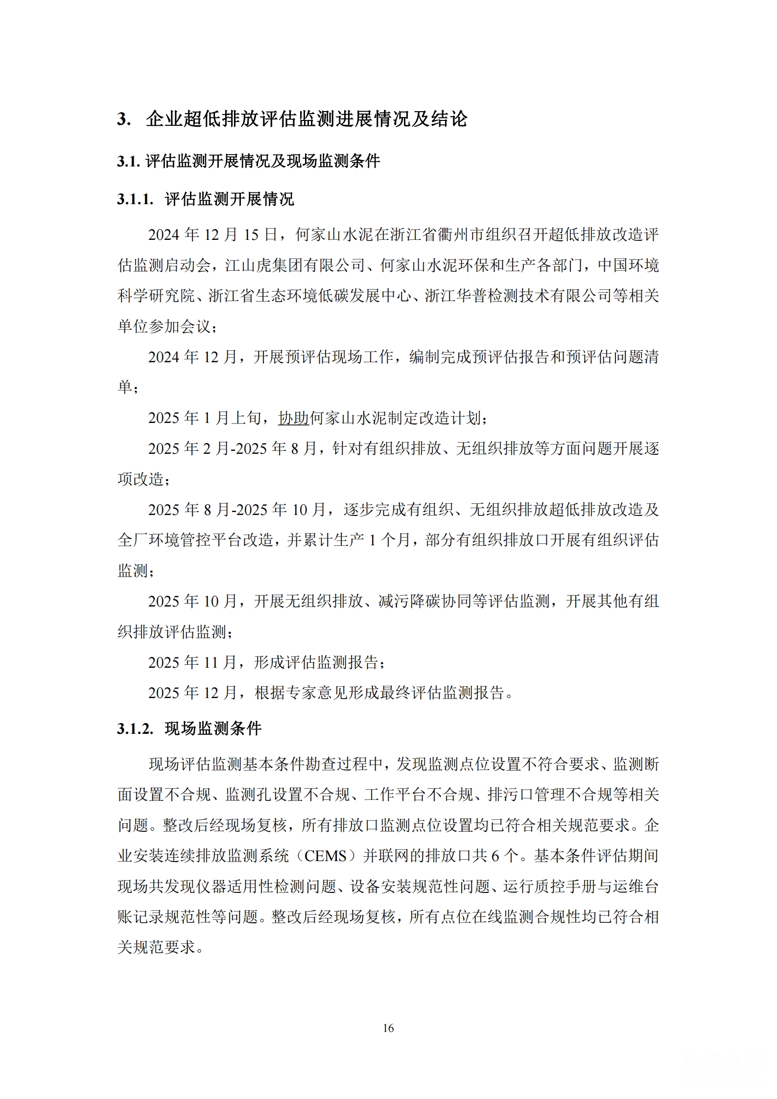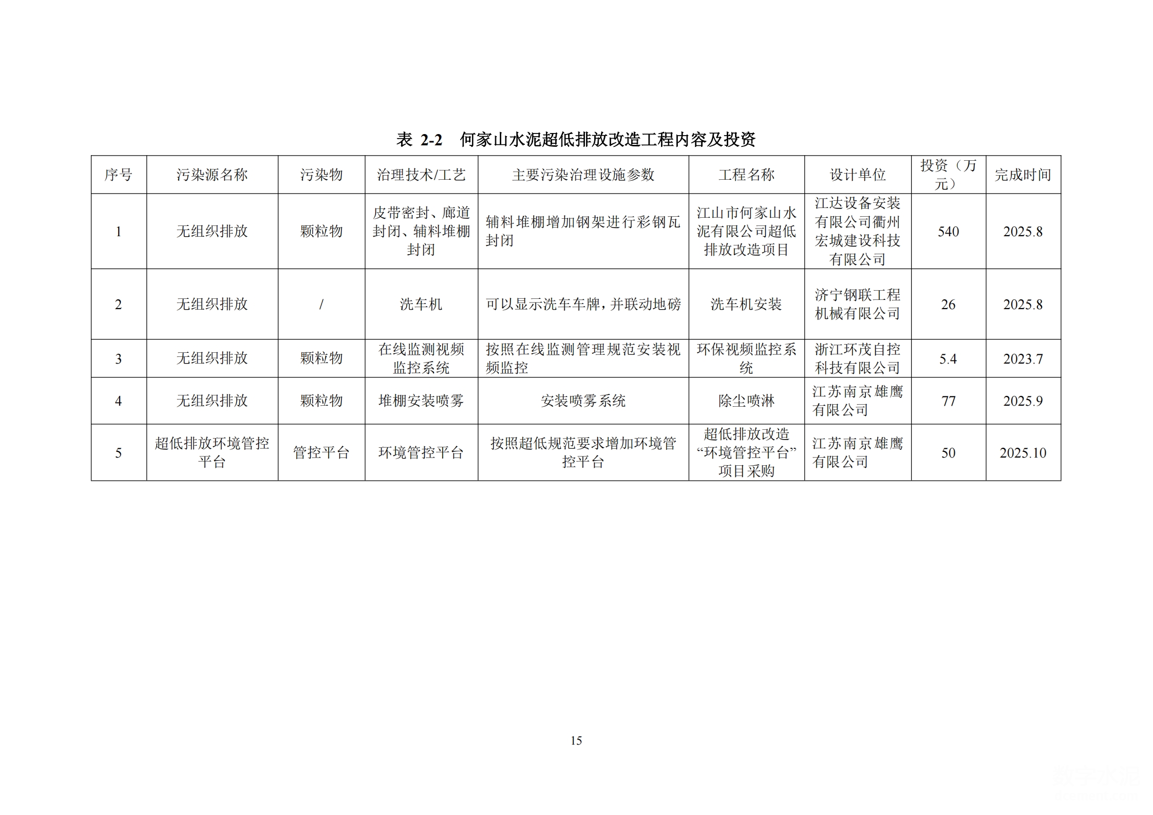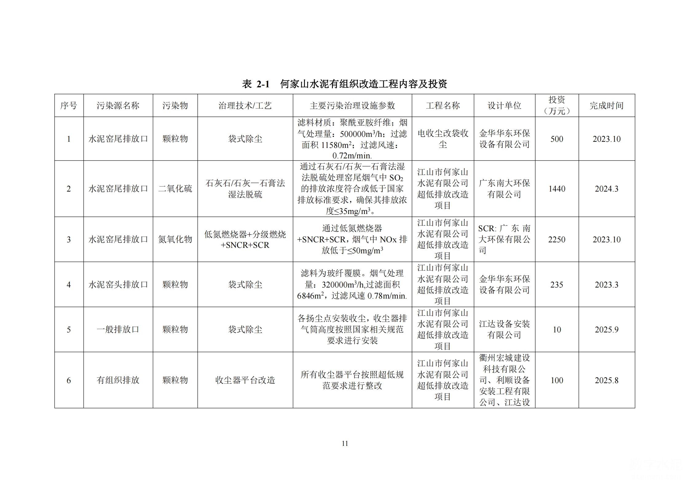 江山市何家山水泥有限公司有組織、無組織部分超低排放改造和評估監測進展情況公示內容