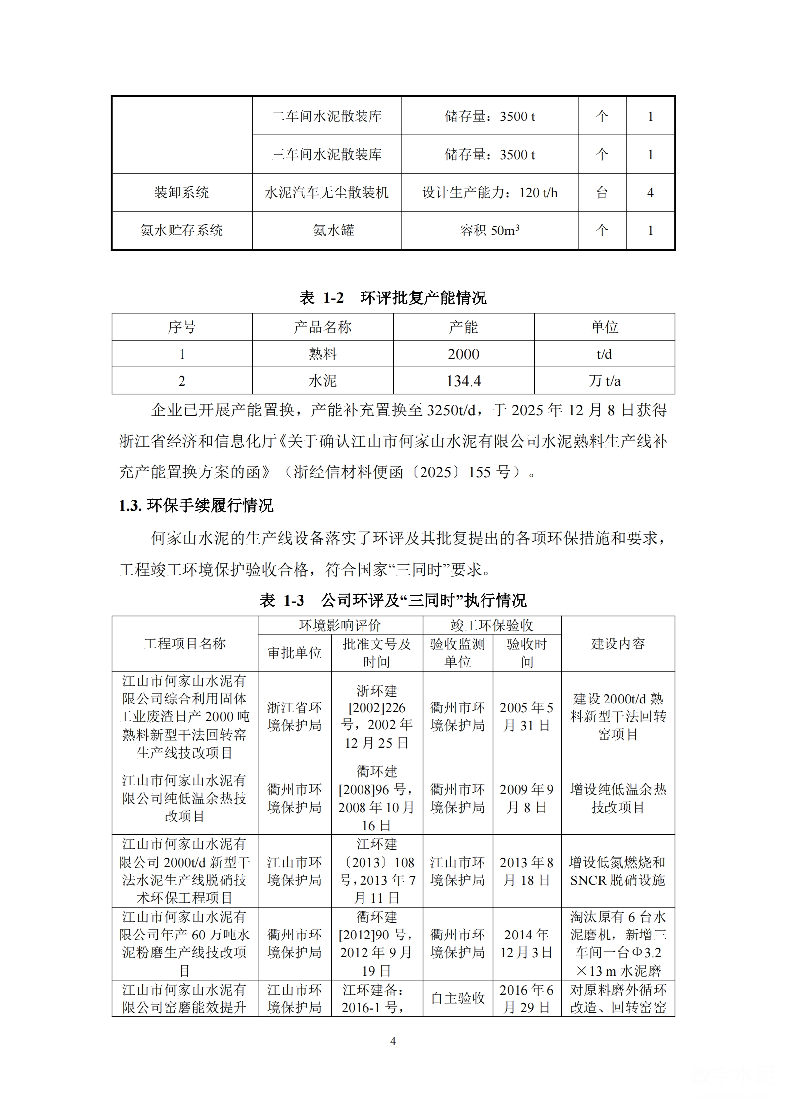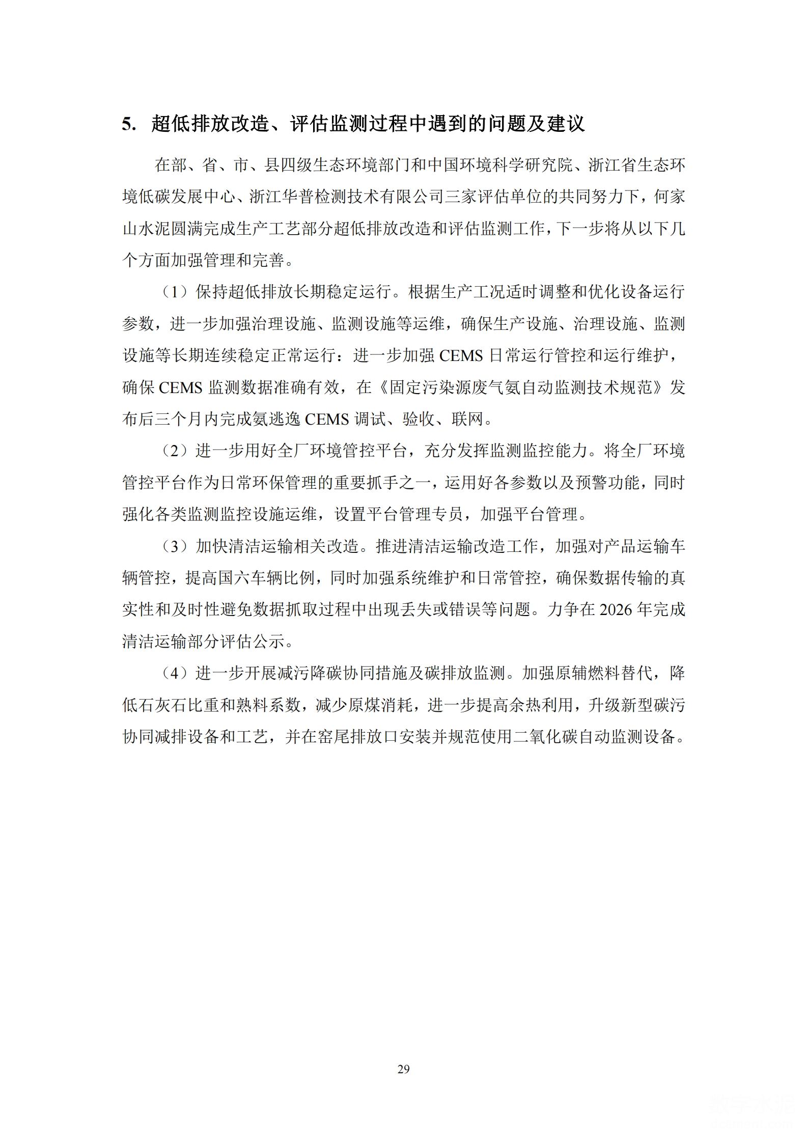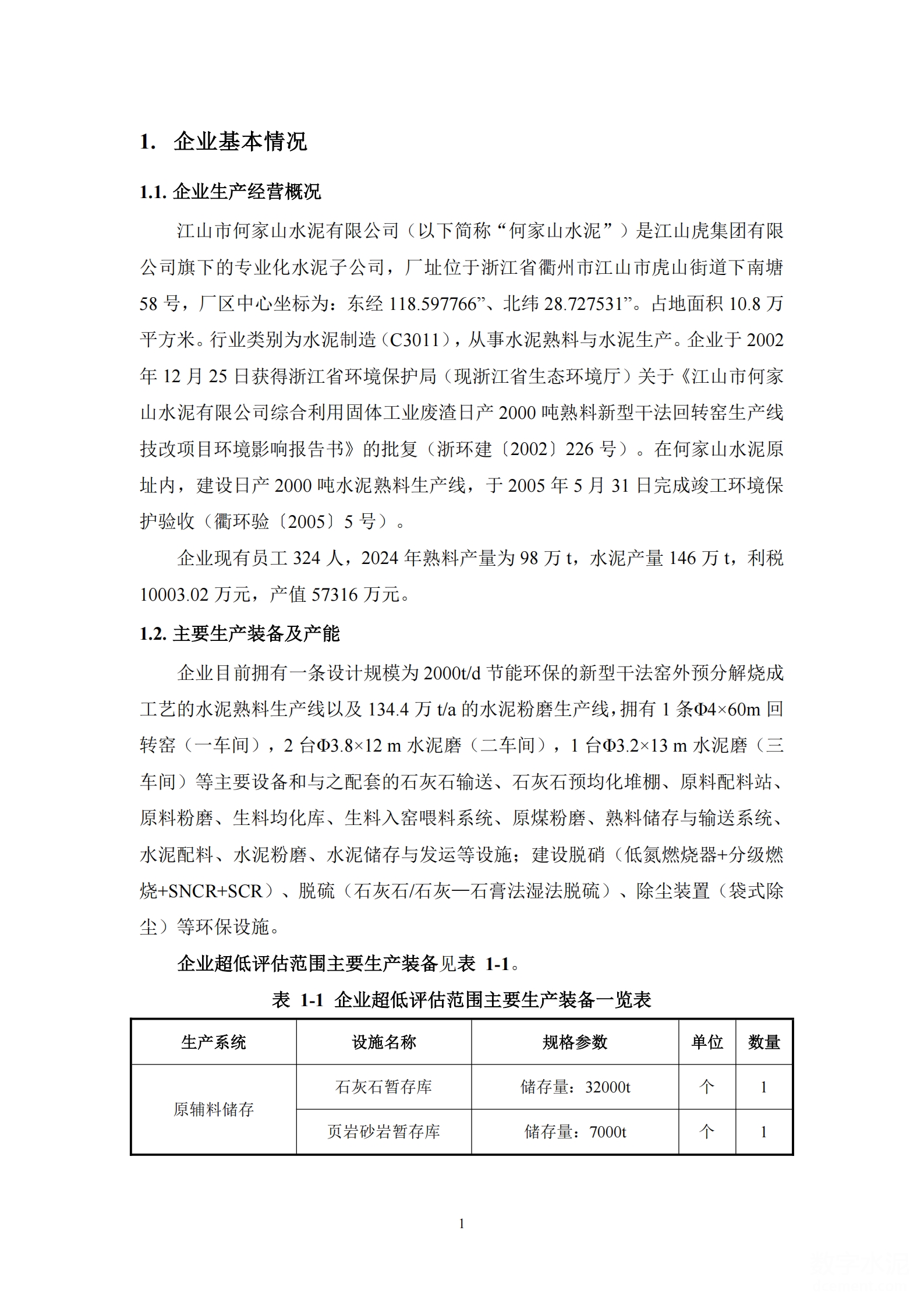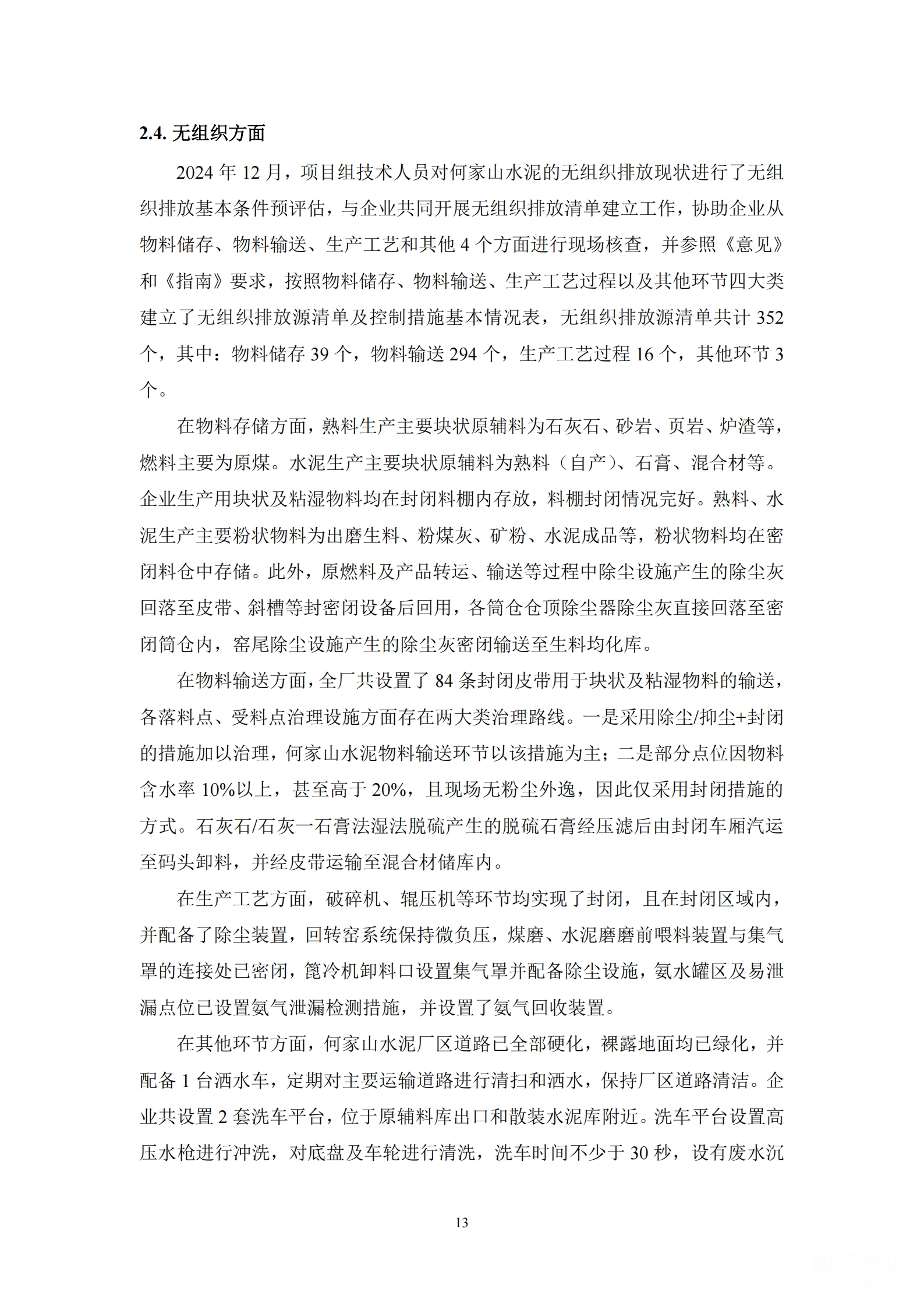 江山市何家山水泥有限公司有組織、無組織部分超低排放改造和評估監測進展情況公示內容