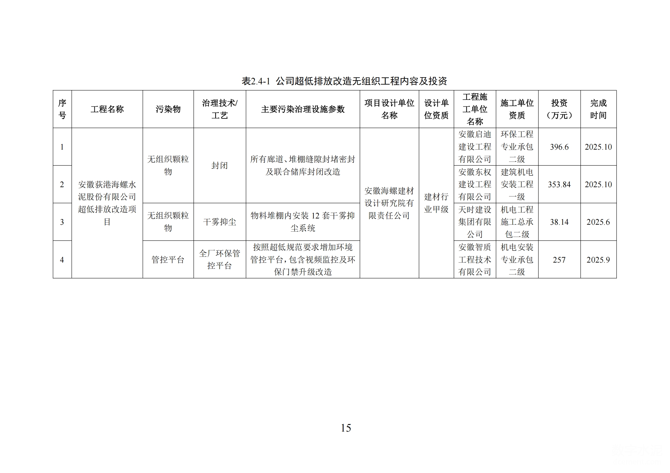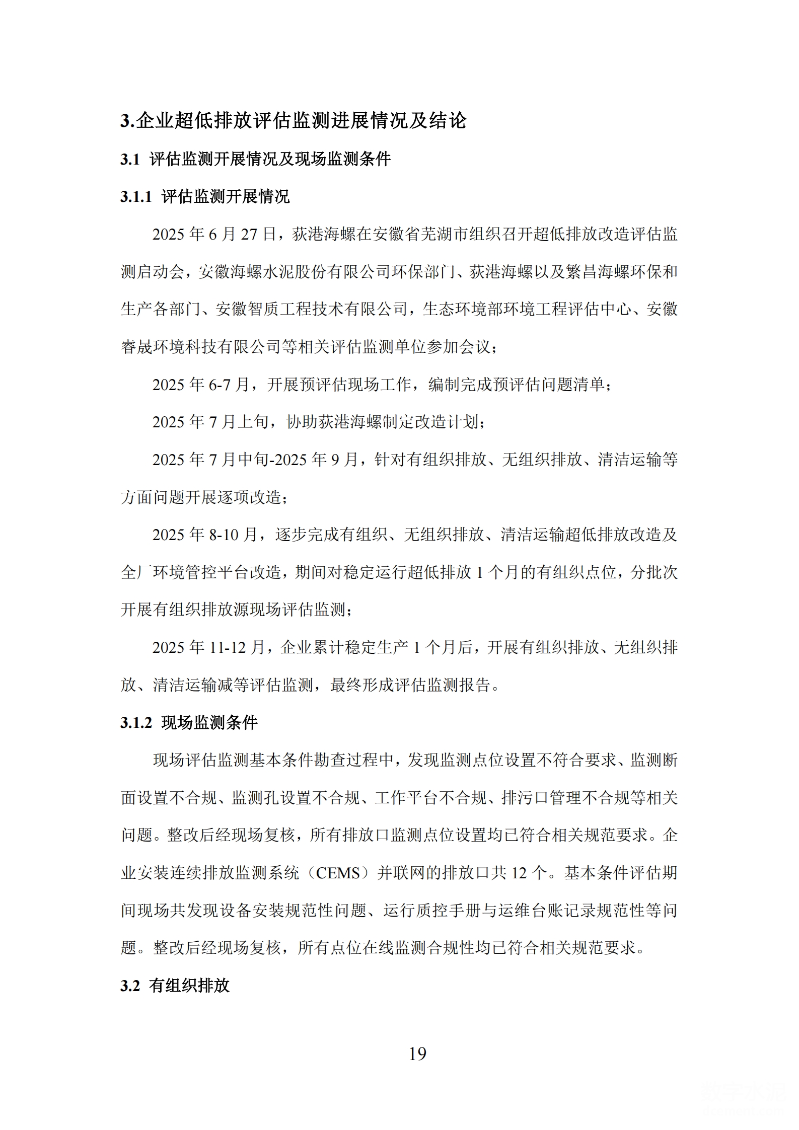 安徽荻港海螺水泥股份有限公司超低排放改造和評估監(jiān)測進(jìn)展情況公示內(nèi)容