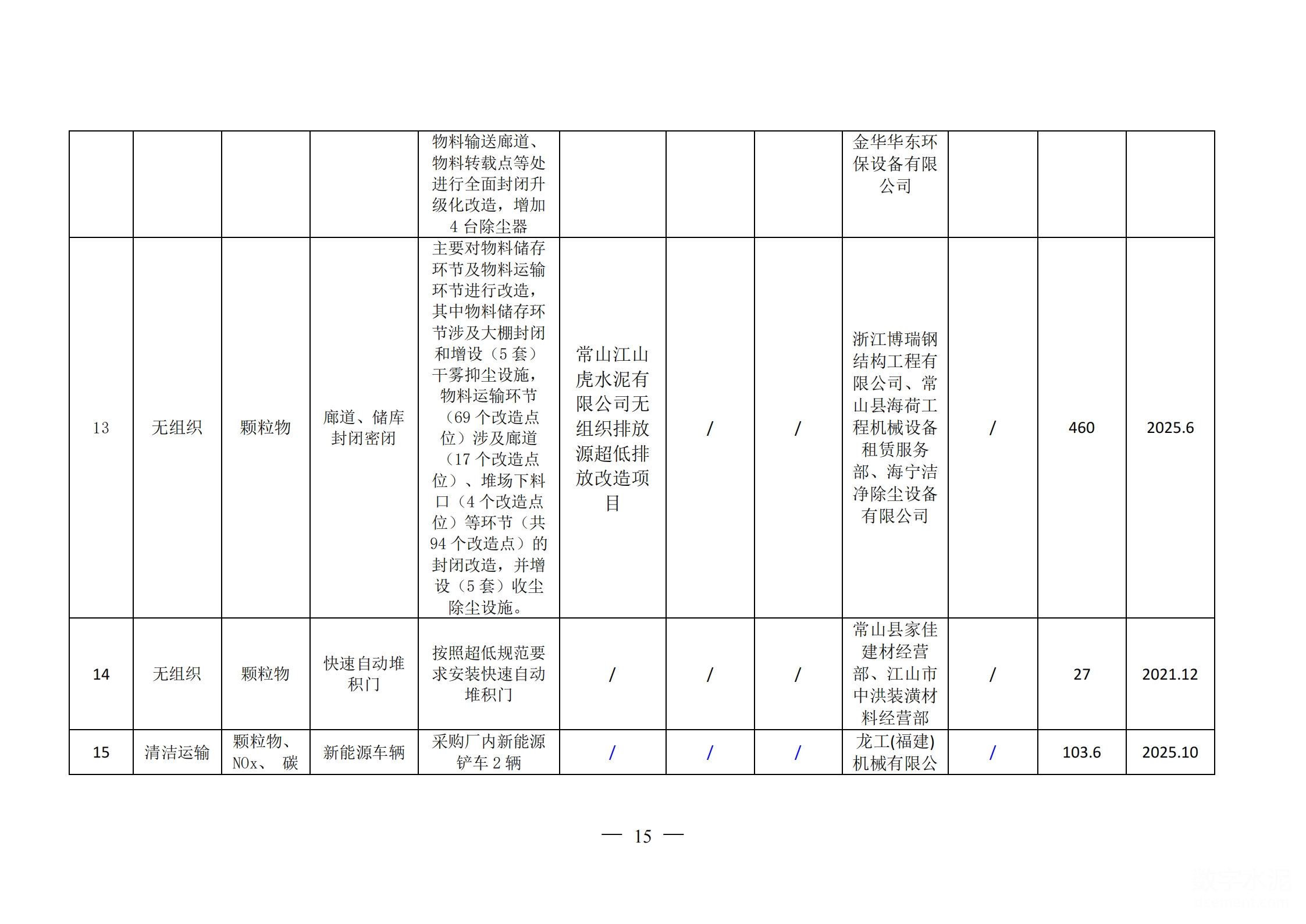 常山江山虎水泥有限公司有組織、無(wú)組織部分超低排放改造和評(píng)估監(jiān)測(cè)進(jìn)展情況公示內(nèi)容