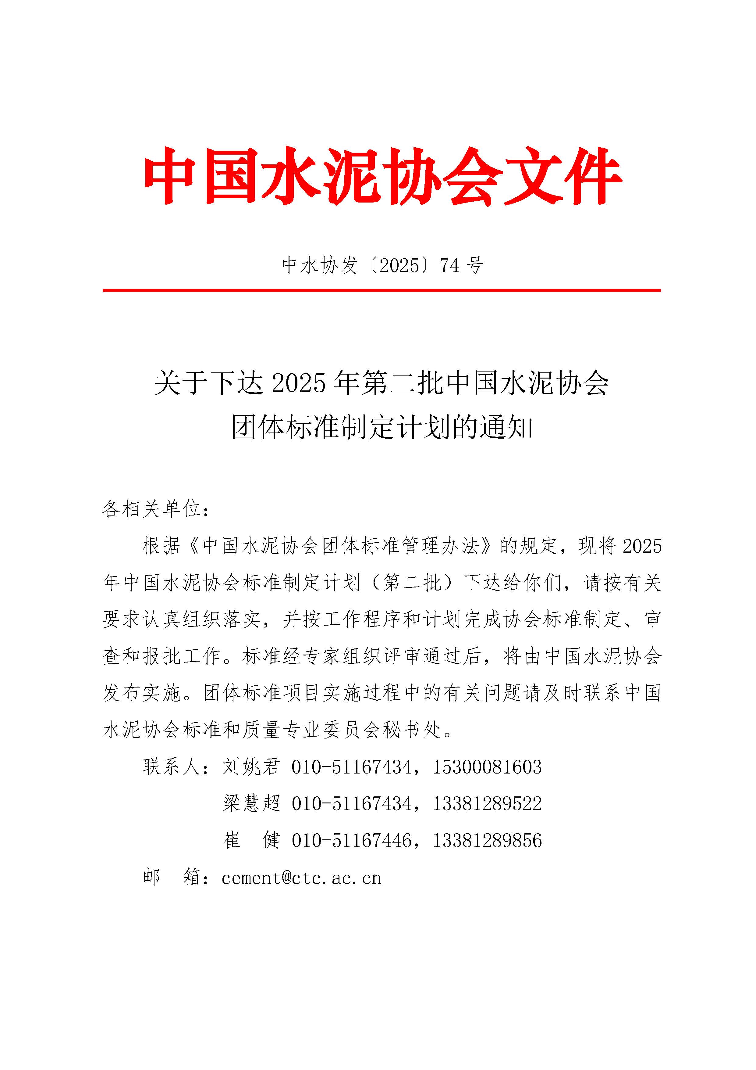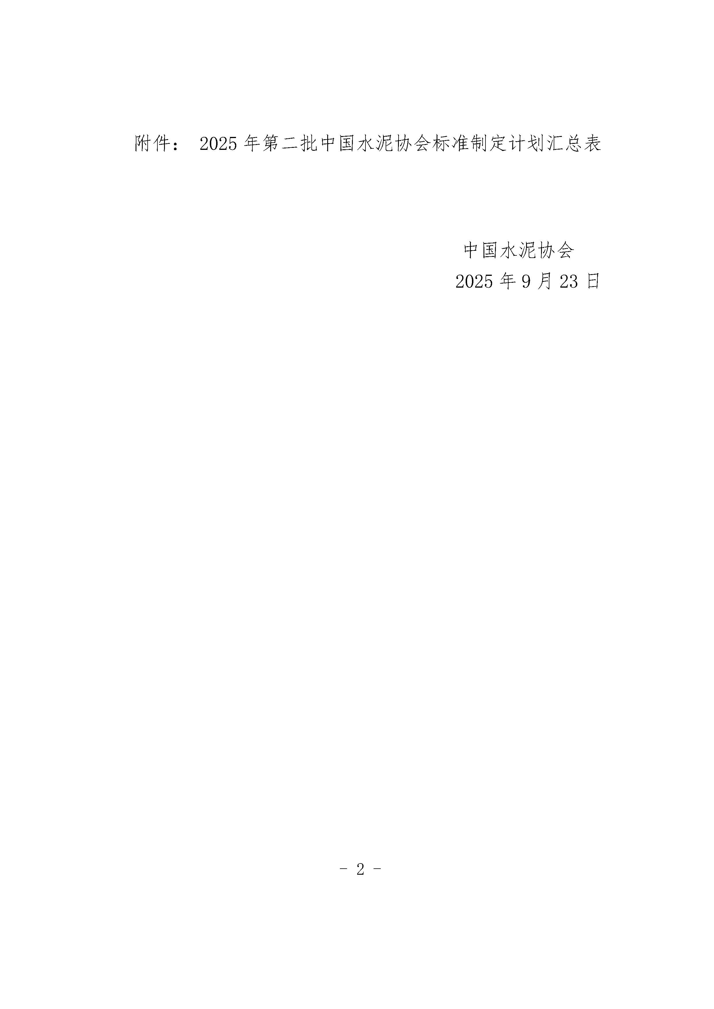 關于下達2025年第二批中國水泥協會團體標準制定計劃的通知