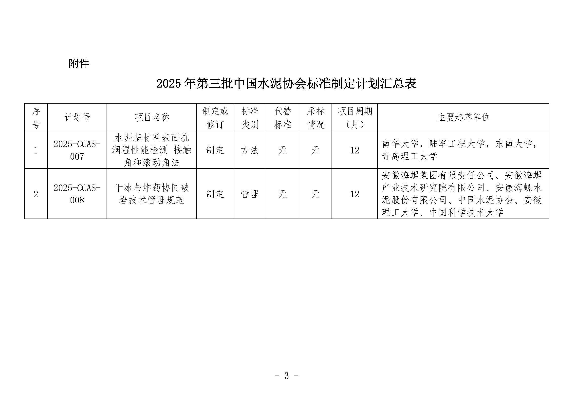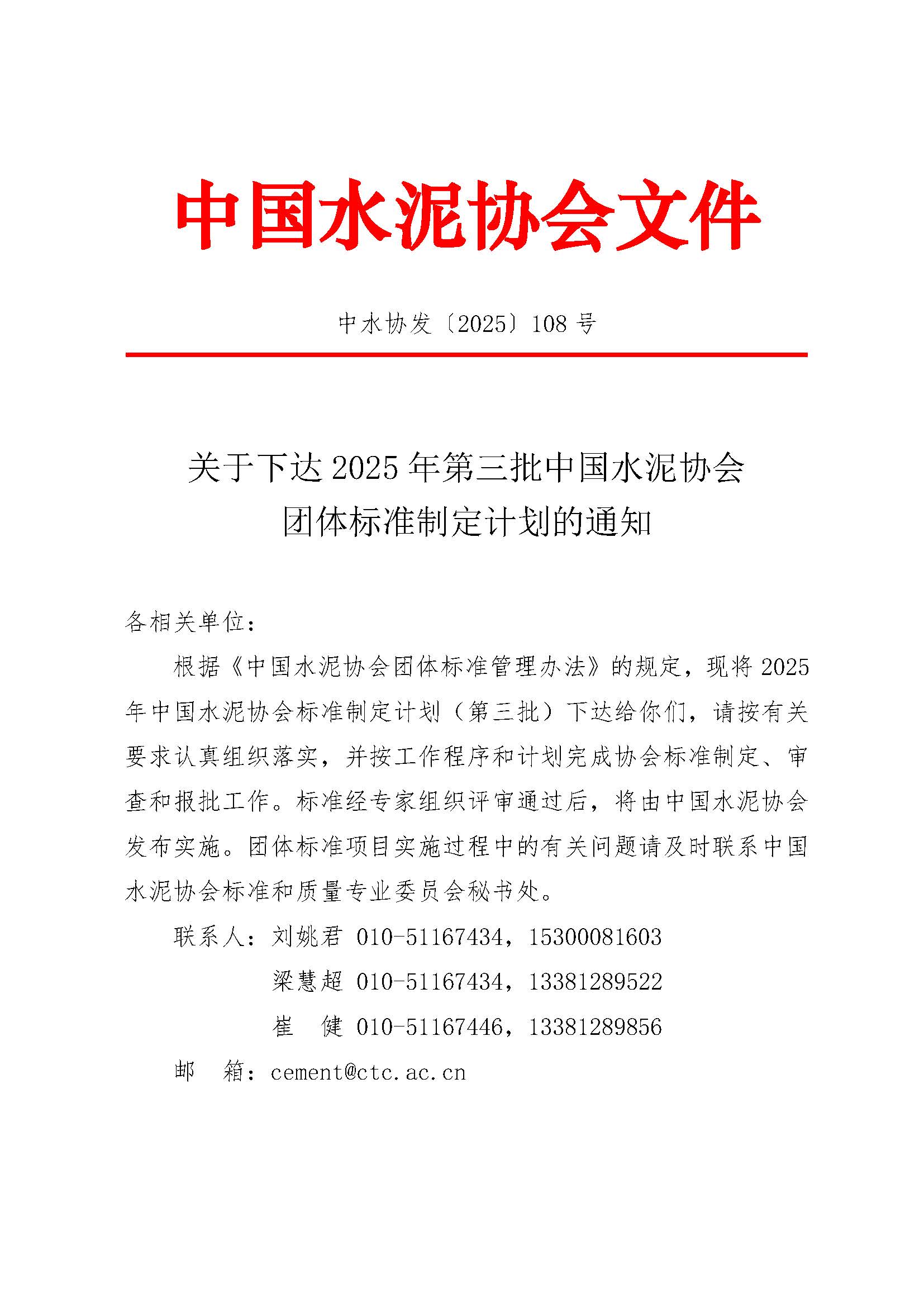 關于下達2025年第三批中國水泥協會團體標準制定計劃的通知