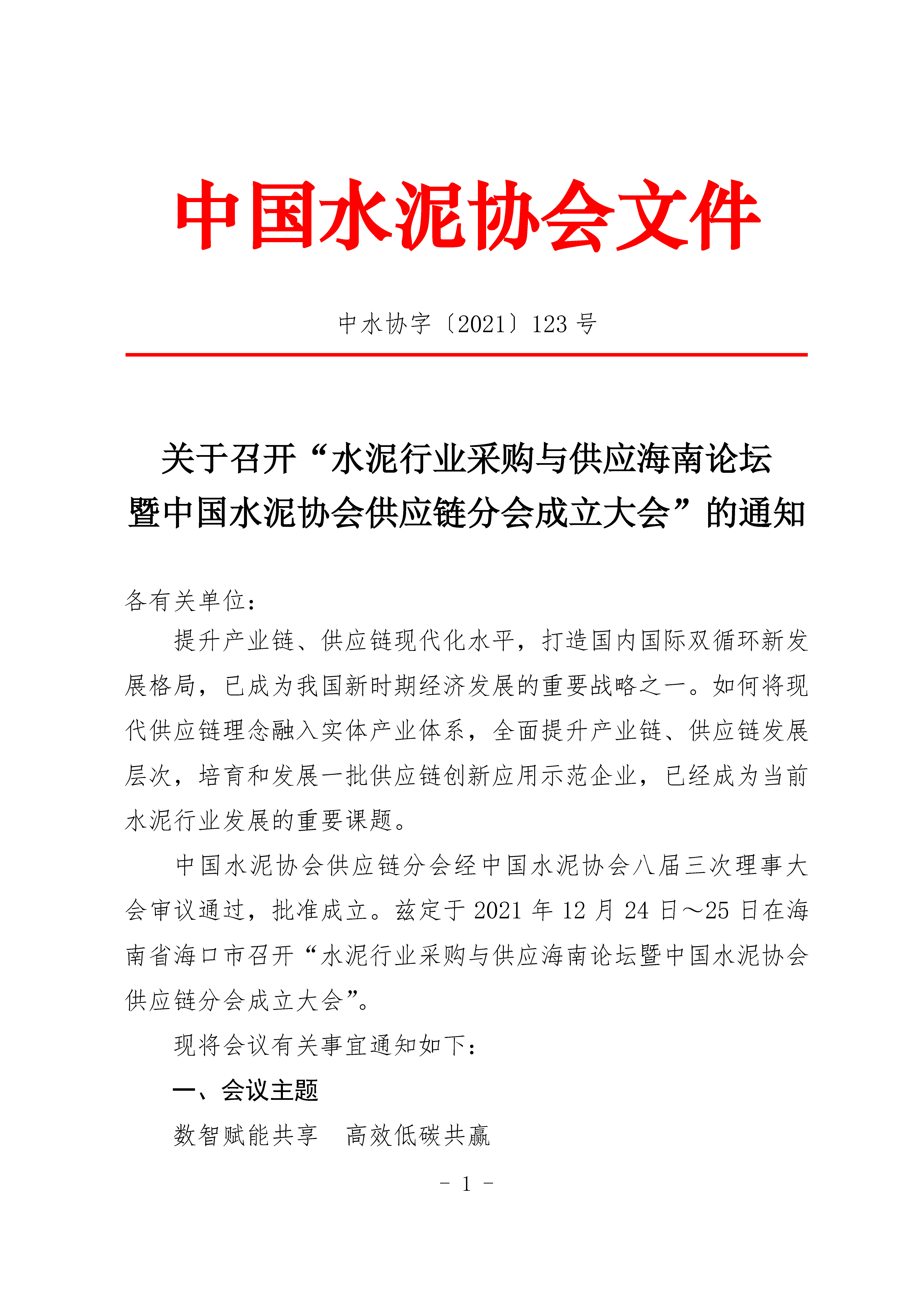 關于召開“水泥行業采購與供應海南論壇暨中國水泥協會供應鏈分會成立大會”的通知