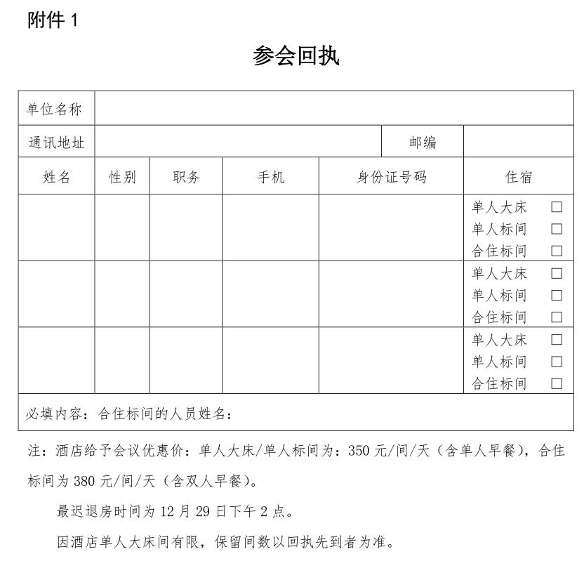 敬請各單位參會代表認真閱讀附件2會議須知的全部內容,并于2021年12月22日前將附件1參會回執以郵件或微信方式返回。