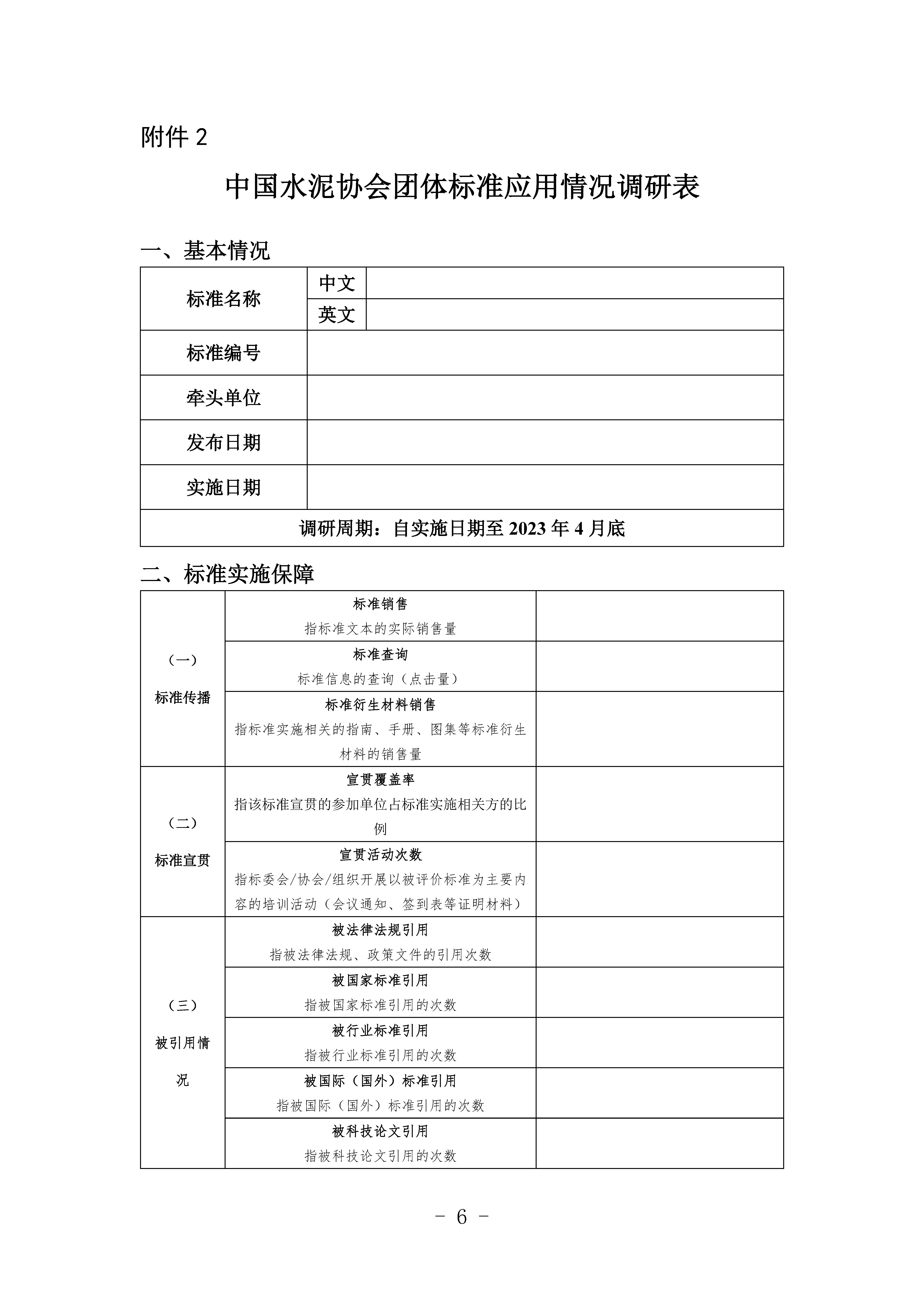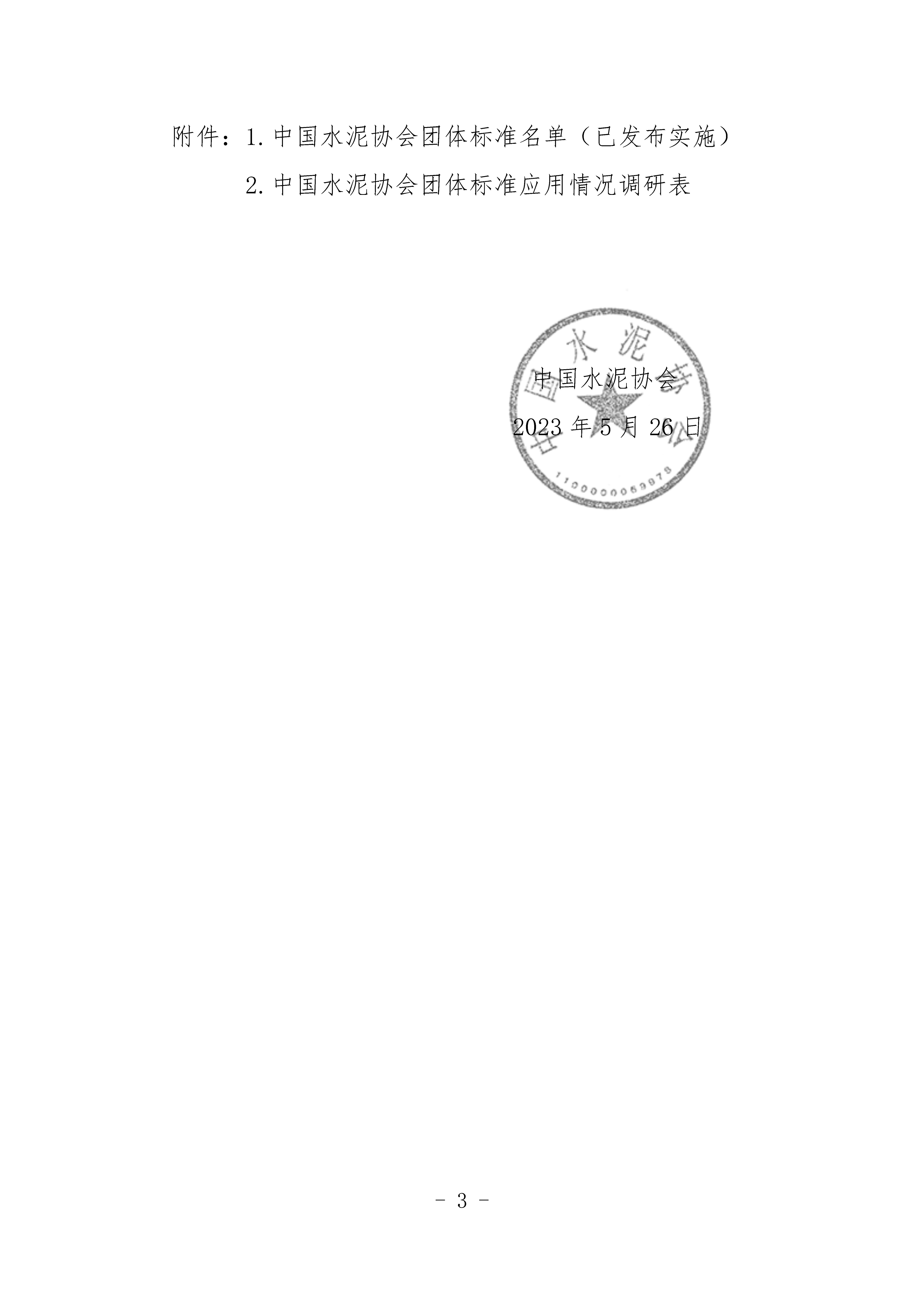 關(guān)于開(kāi)展中國(guó)水泥協(xié)會(huì)團(tuán)體標(biāo)準(zhǔn)應(yīng)用情況調(diào)研工作的通知