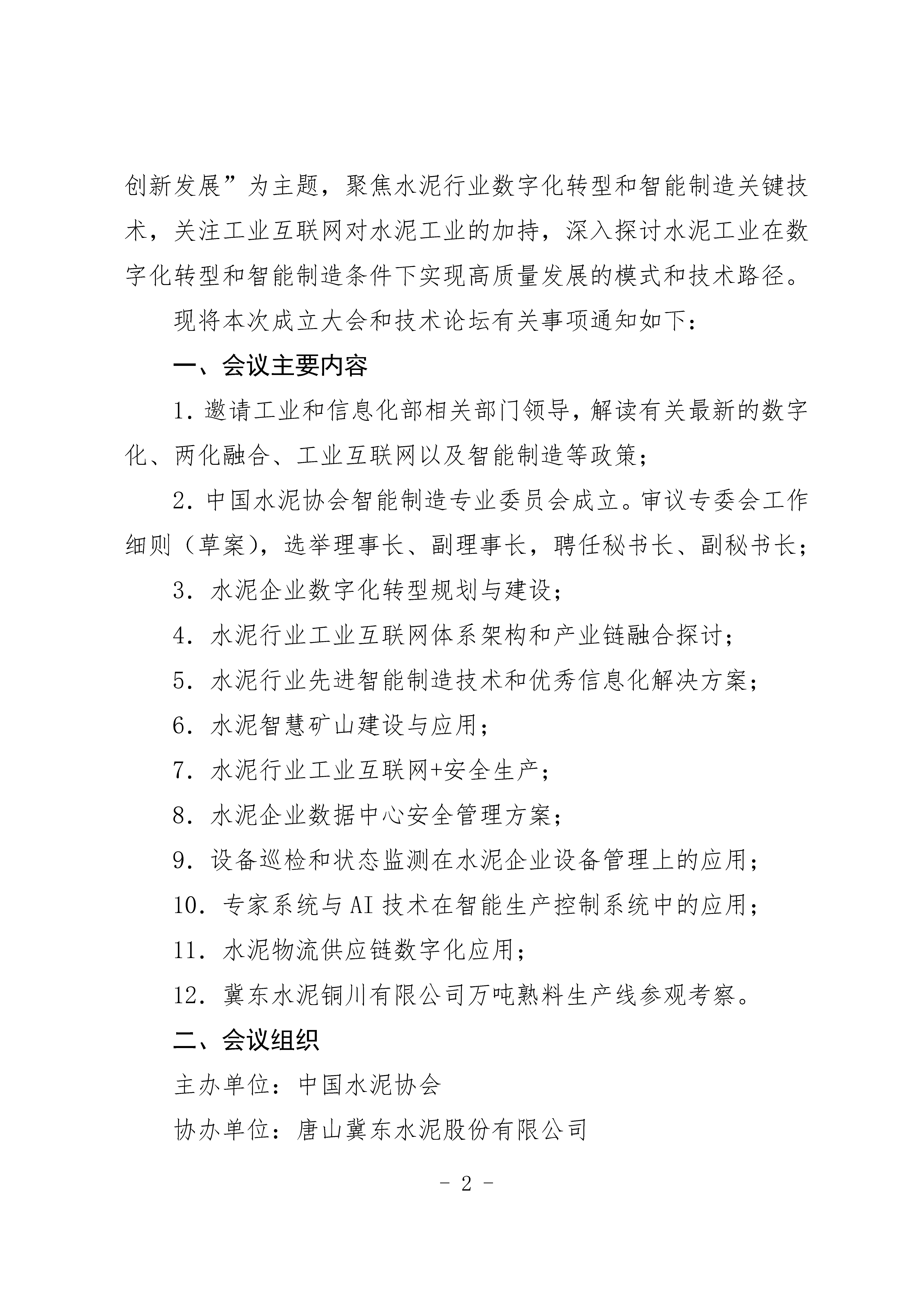 關(guān)于召開中國水泥協(xié)會智能制造專業(yè)委員會成立大會暨水泥行業(yè)數(shù)字化轉(zhuǎn)型與智能制造技術(shù)論壇的通知