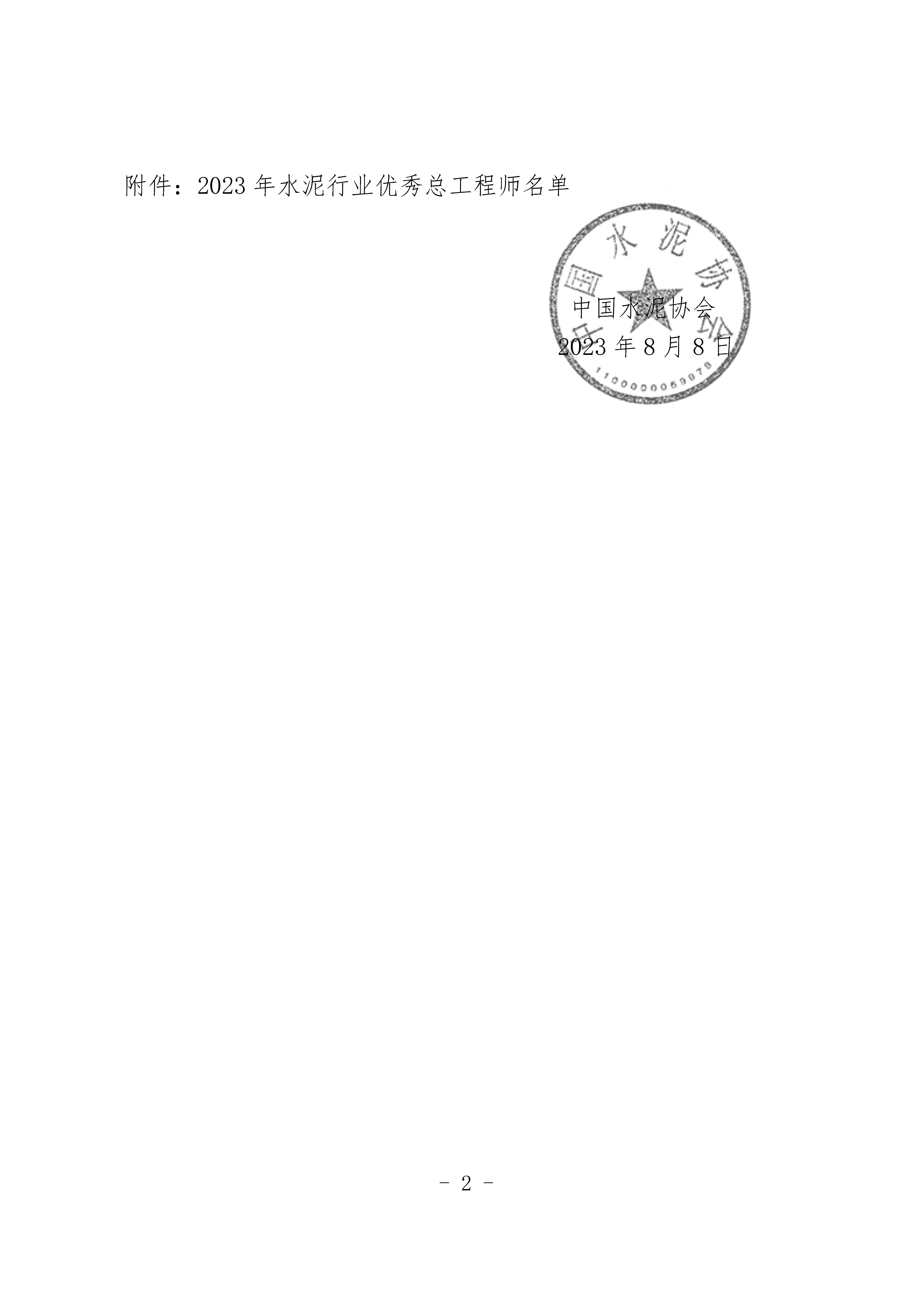 關于授予楊丹、王金祥等34人“2023年水泥行業優秀總工程師”稱號的決定