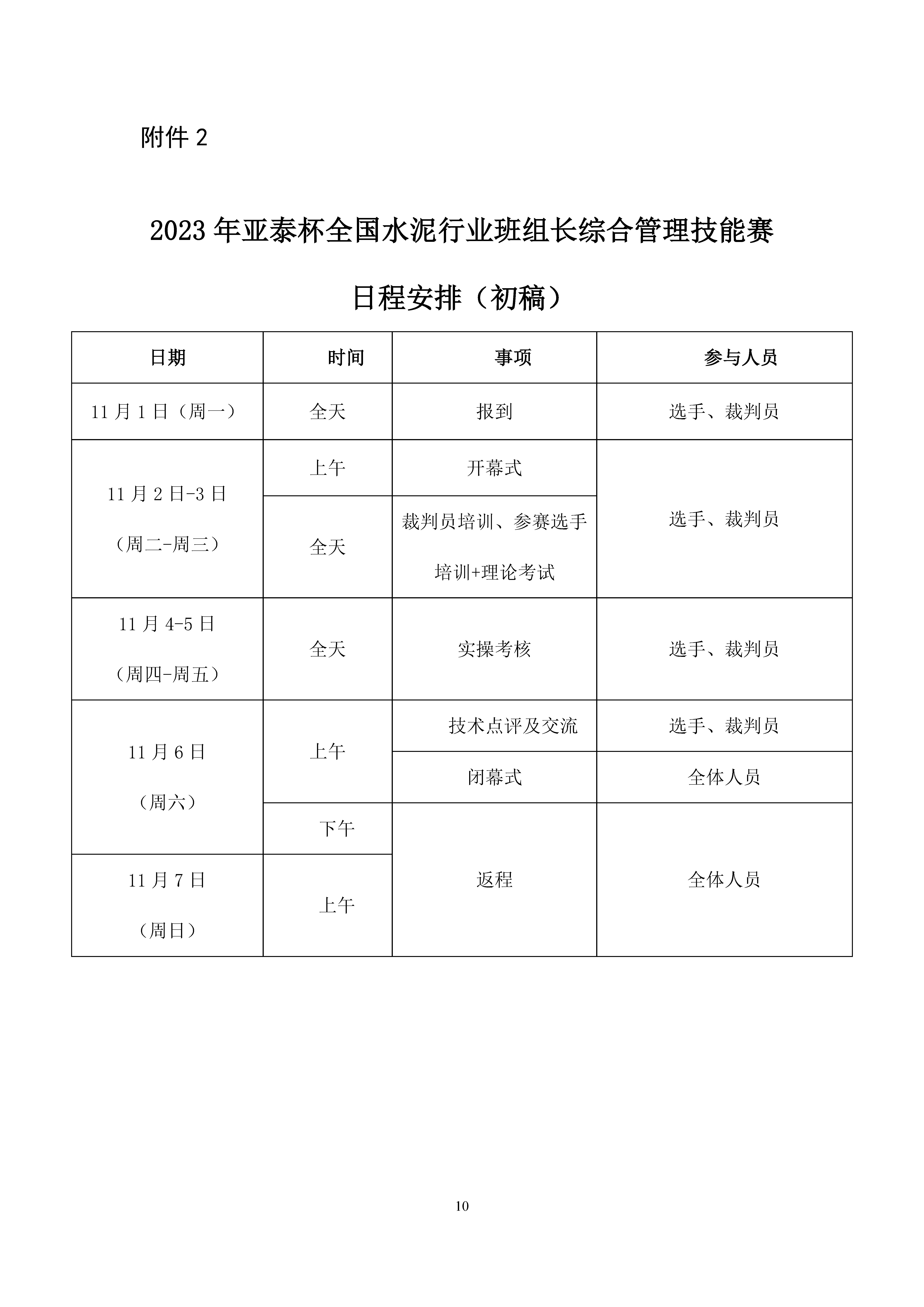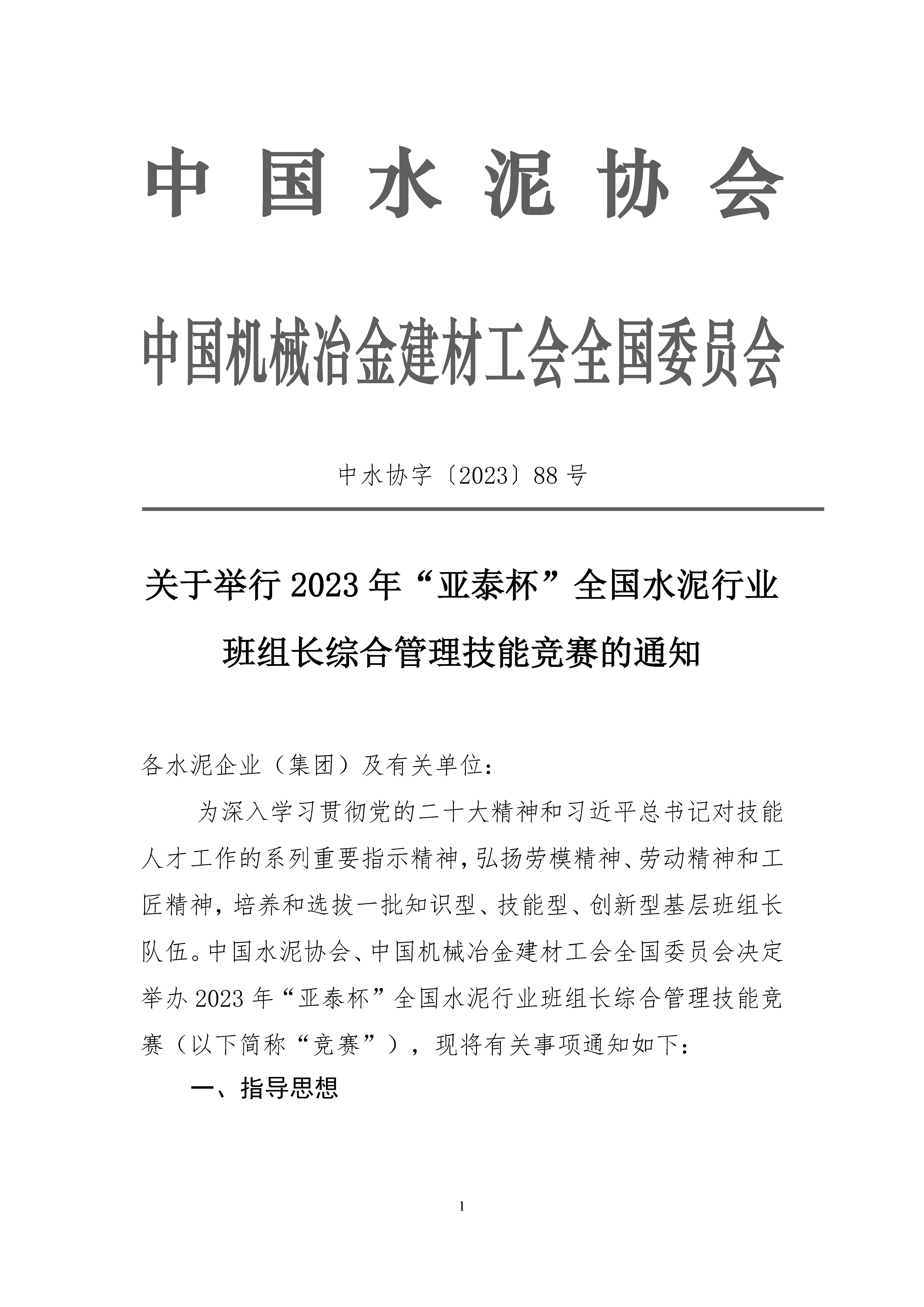 關于舉行2023 年“亞泰杯”全國水泥行業 班組長綜合管理技能競賽的通知