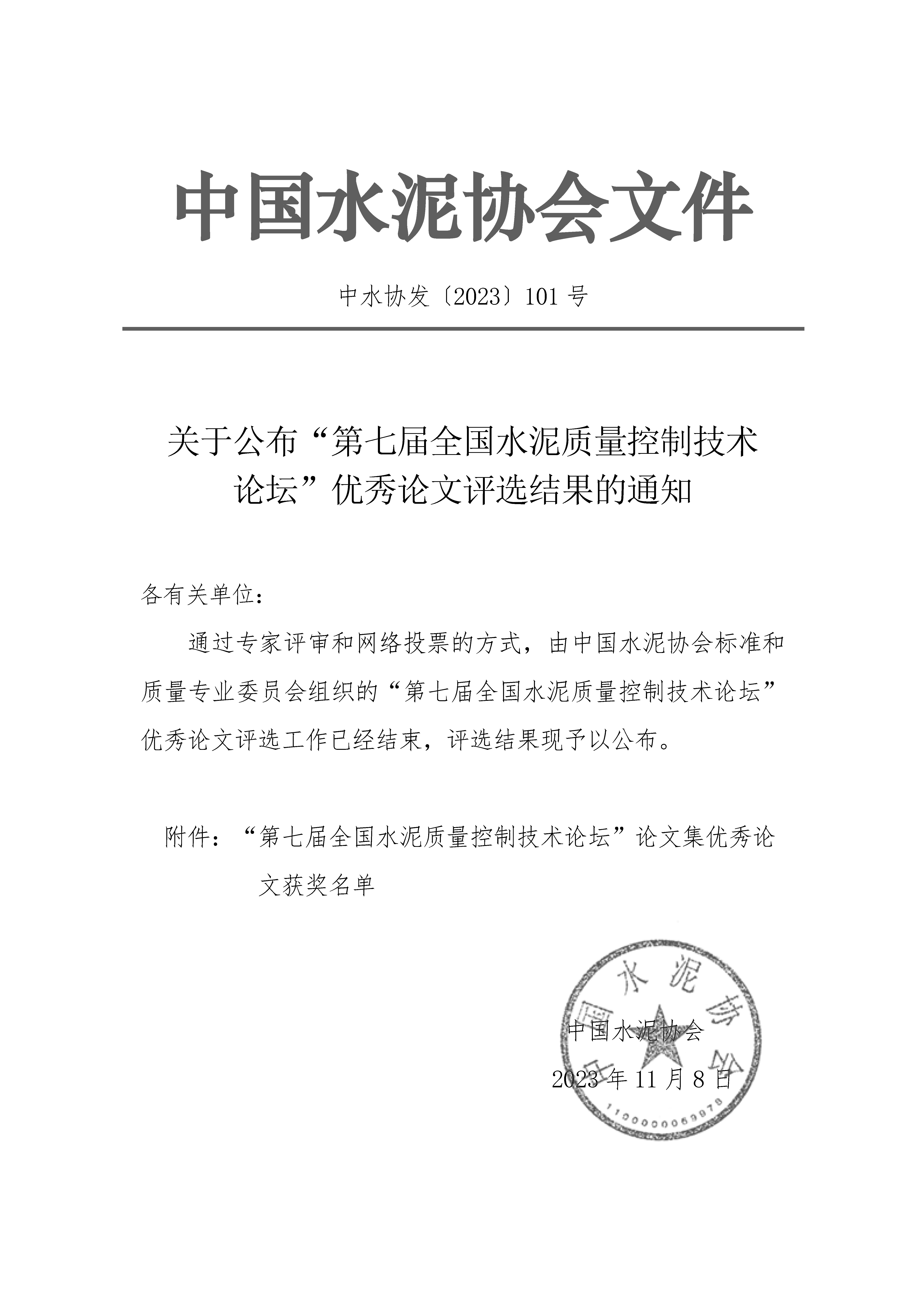 關(guān)于公布“第七屆全國(guó)水泥質(zhì)量控制技術(shù)論壇”優(yōu)秀論文評(píng)選結(jié)果的通知