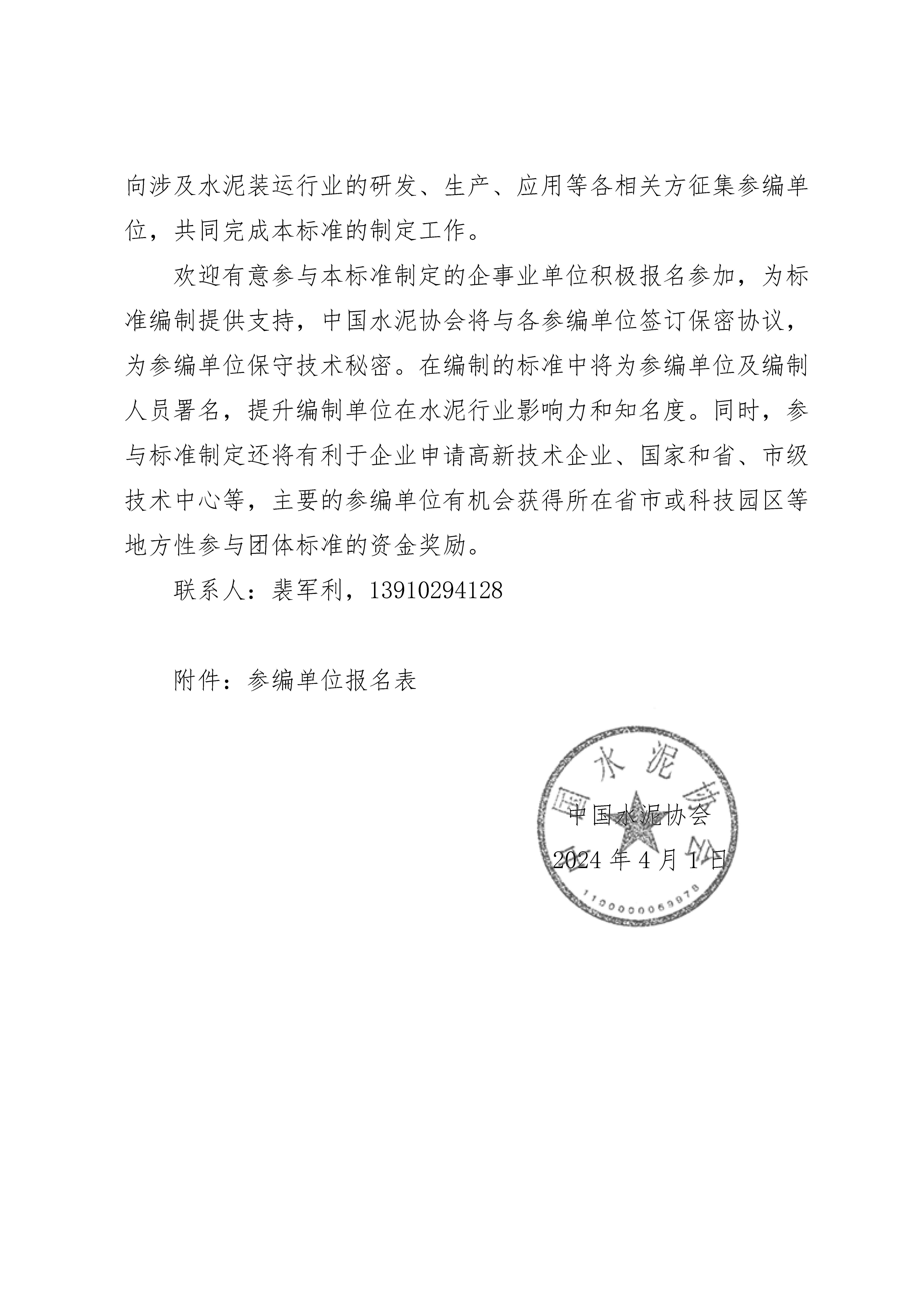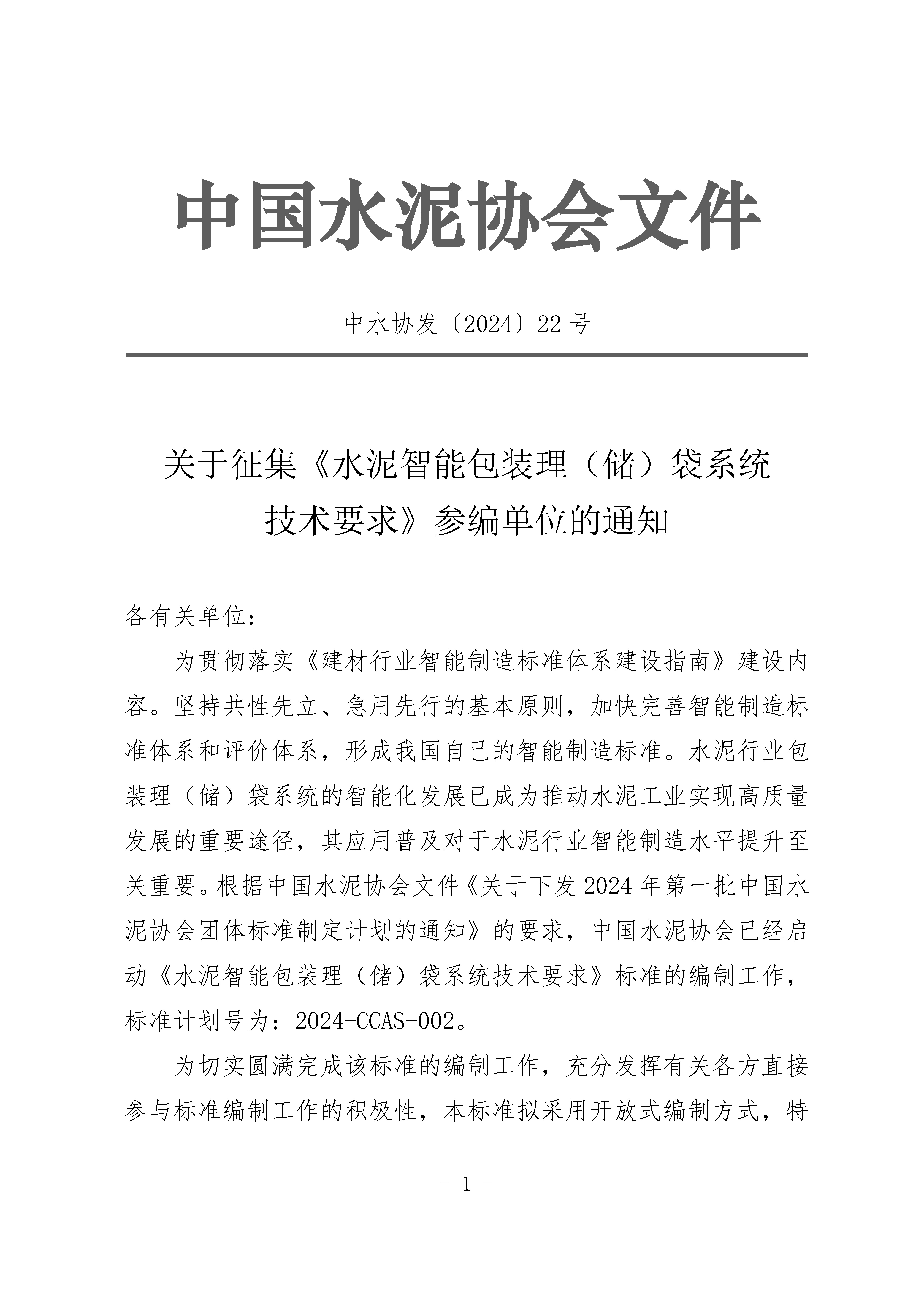 關于征集《水泥智能包裝理(儲)袋系統 技術要求》參編單位的通知