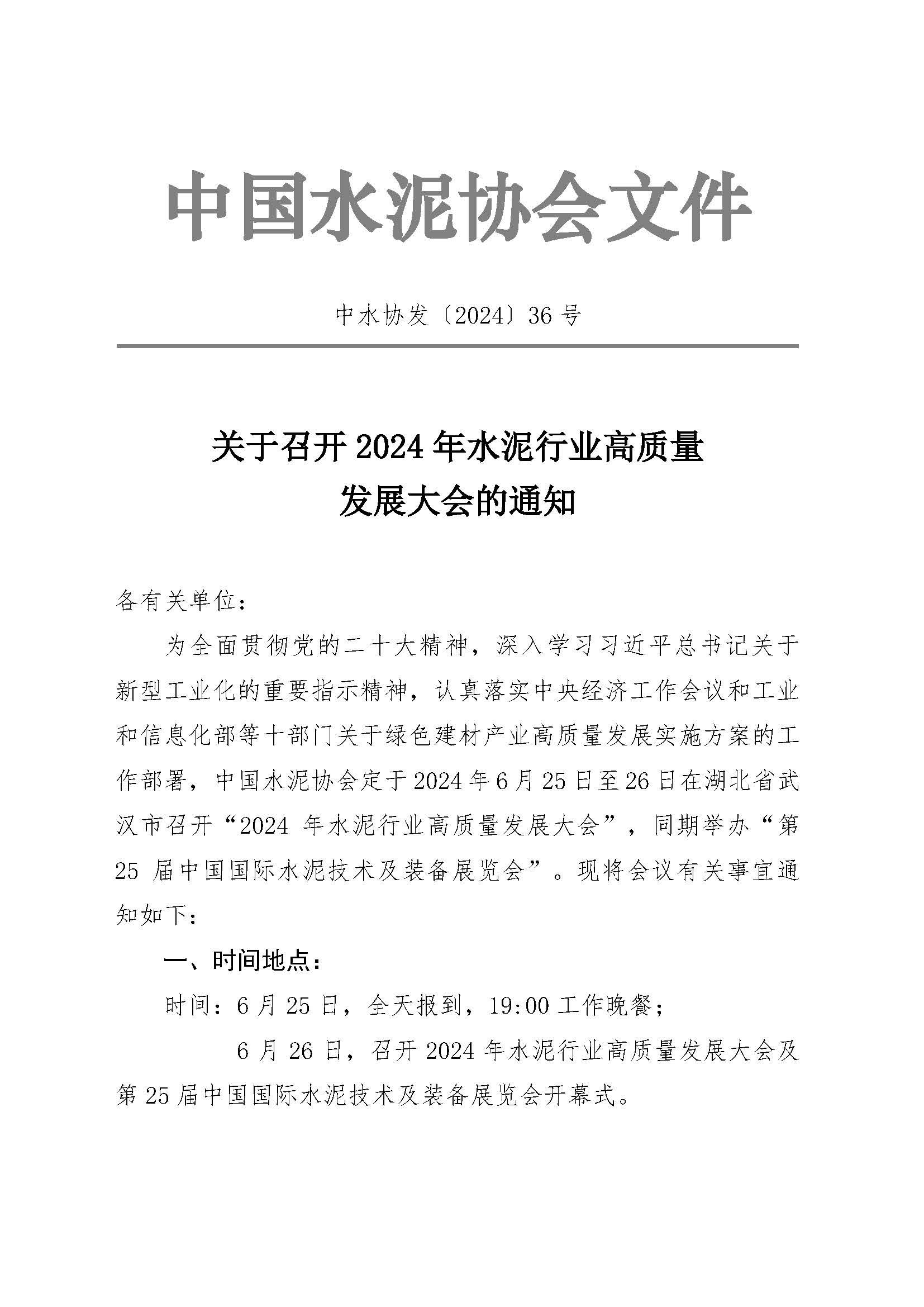 關于召開2024年水泥行業高質量發展大會的通知