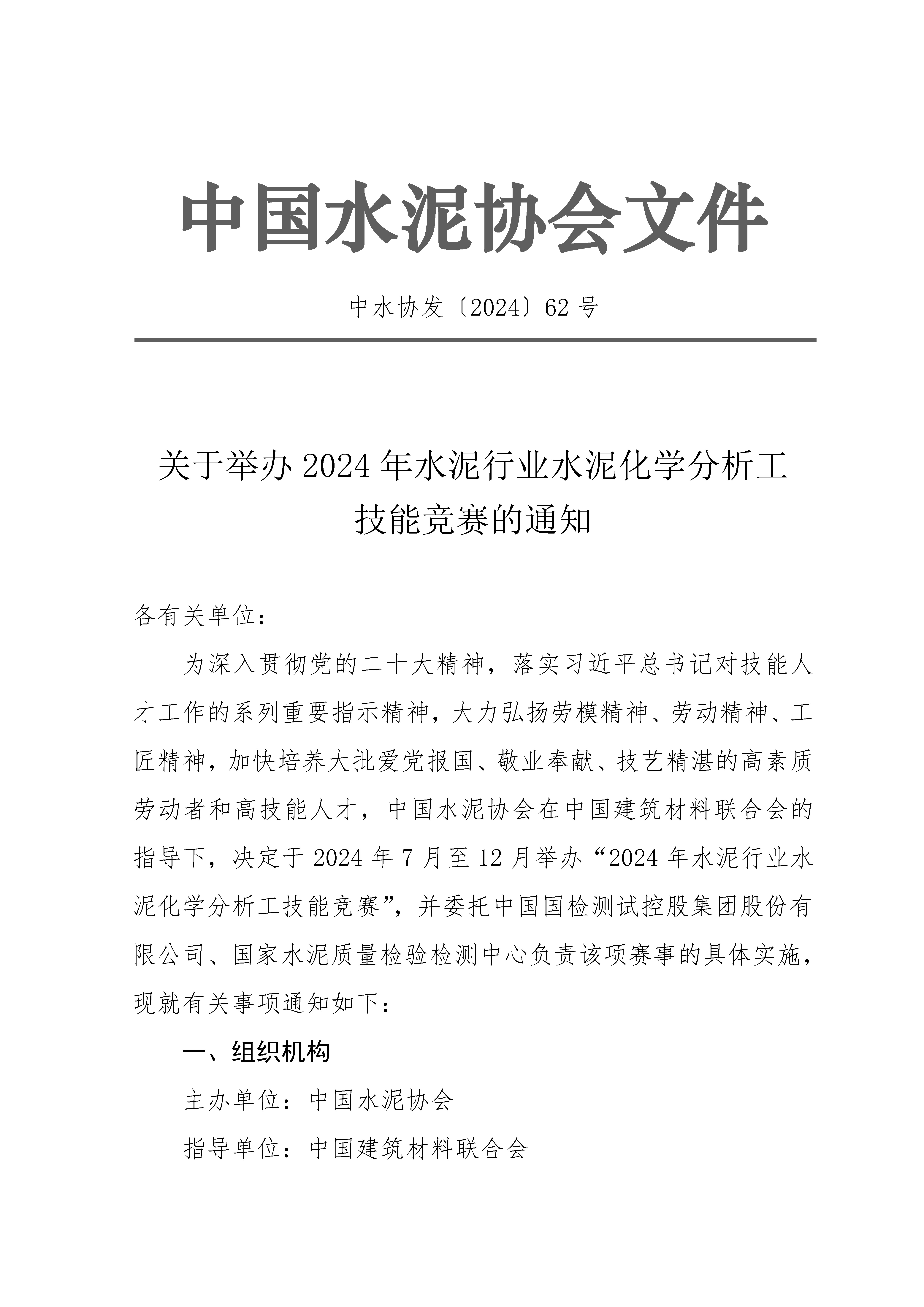 關于舉辦2024年水泥行業水泥化學分析工技能競賽的通知