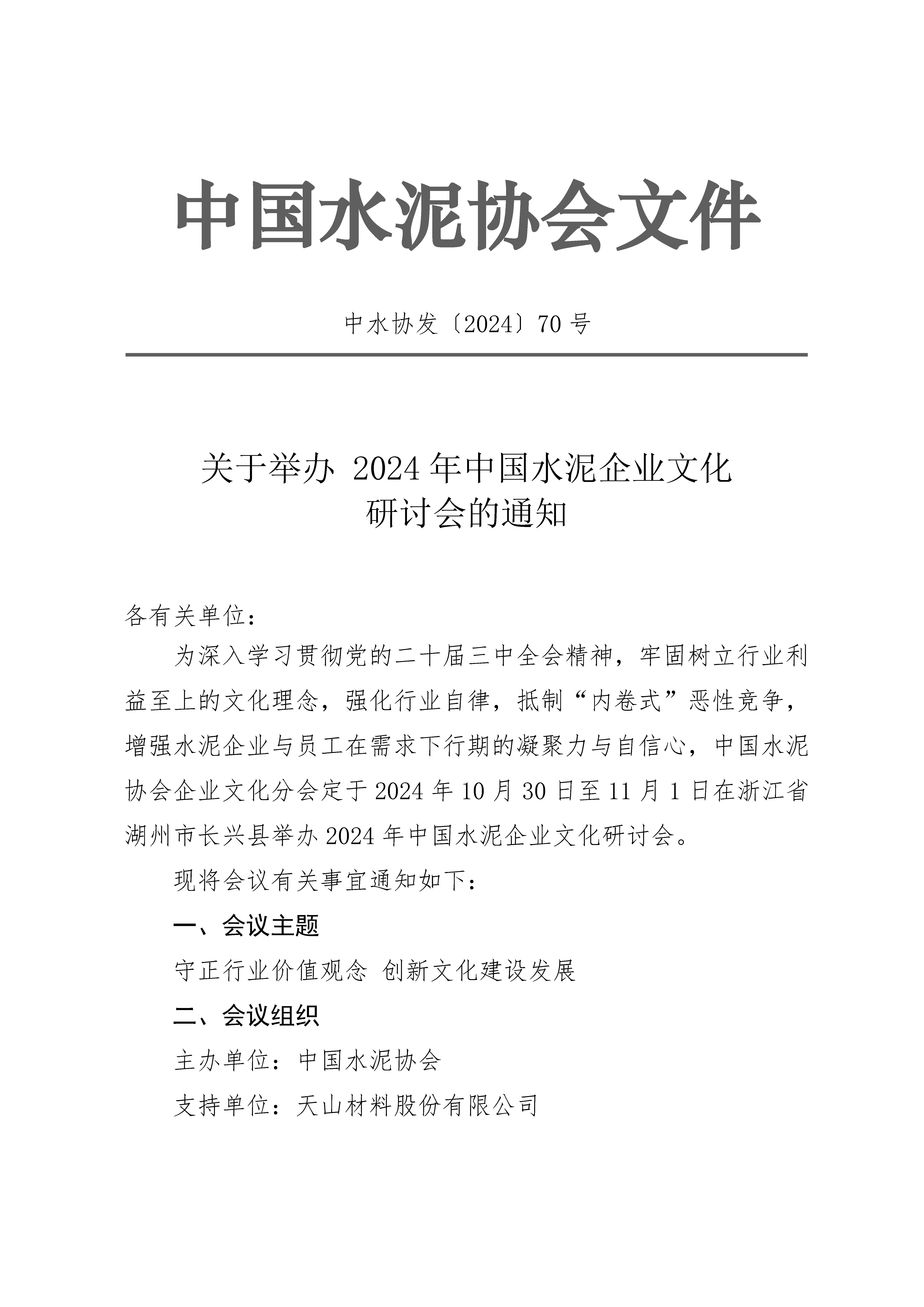 關于舉辦2024年中國水泥企業文化研討會的通知