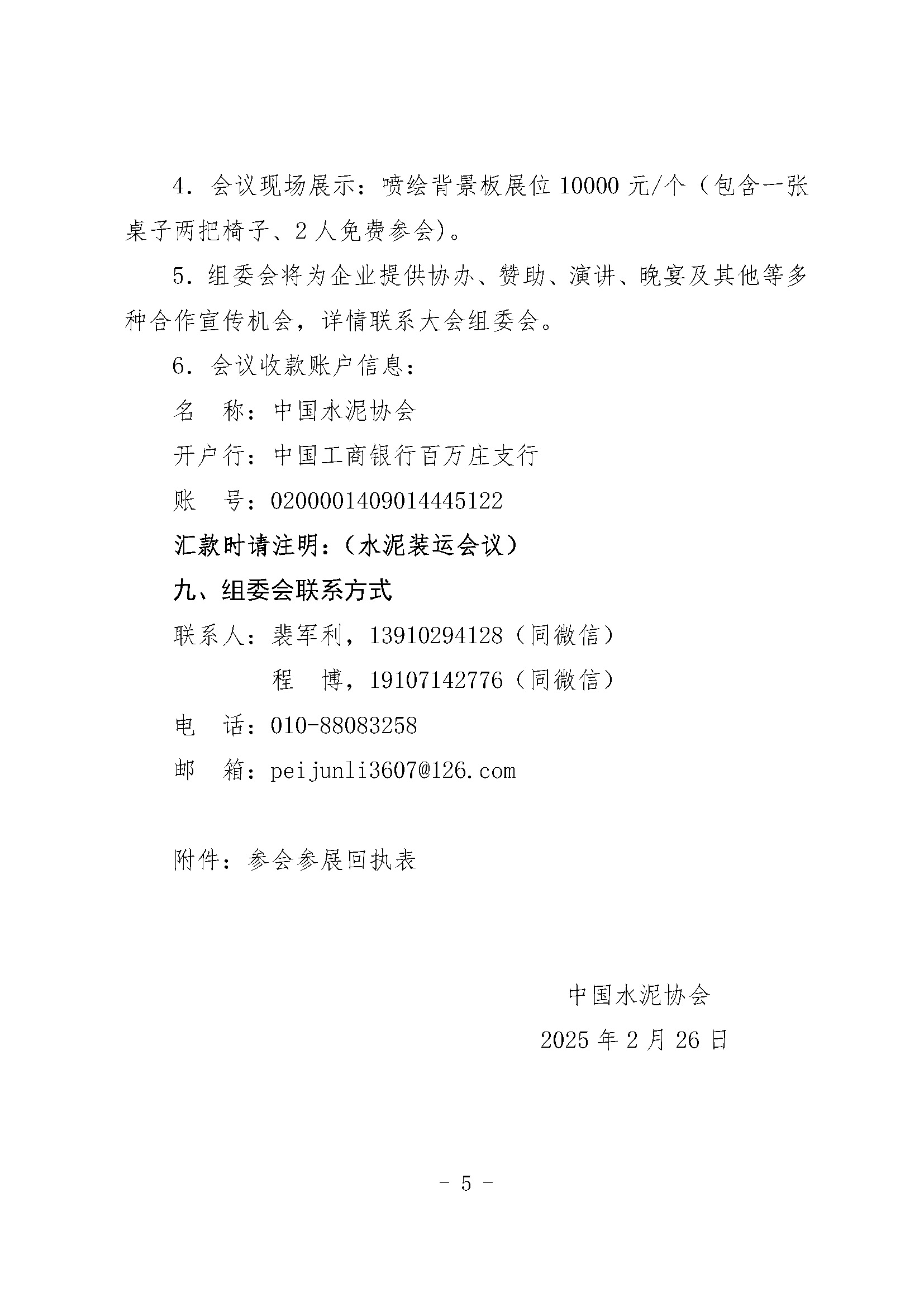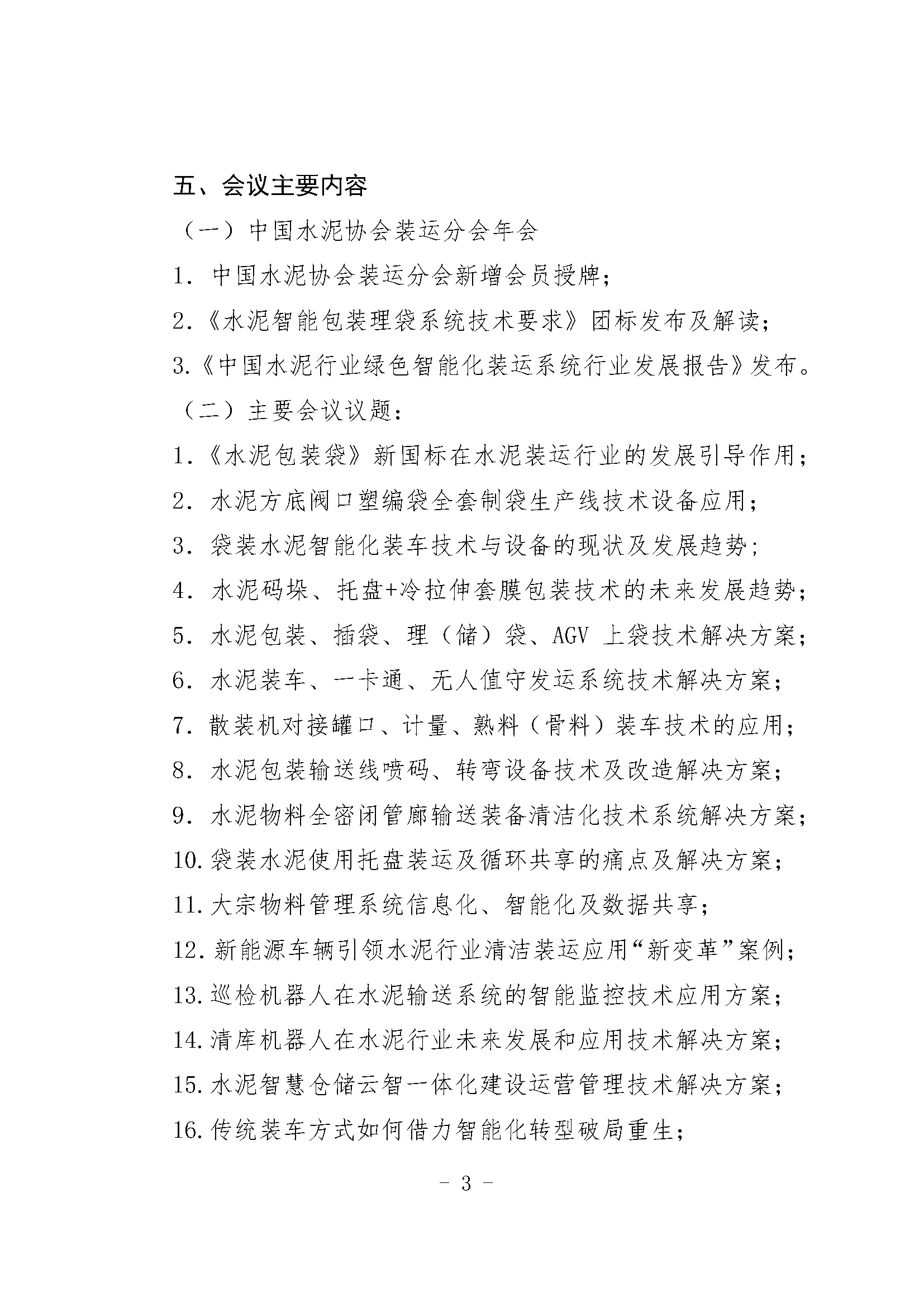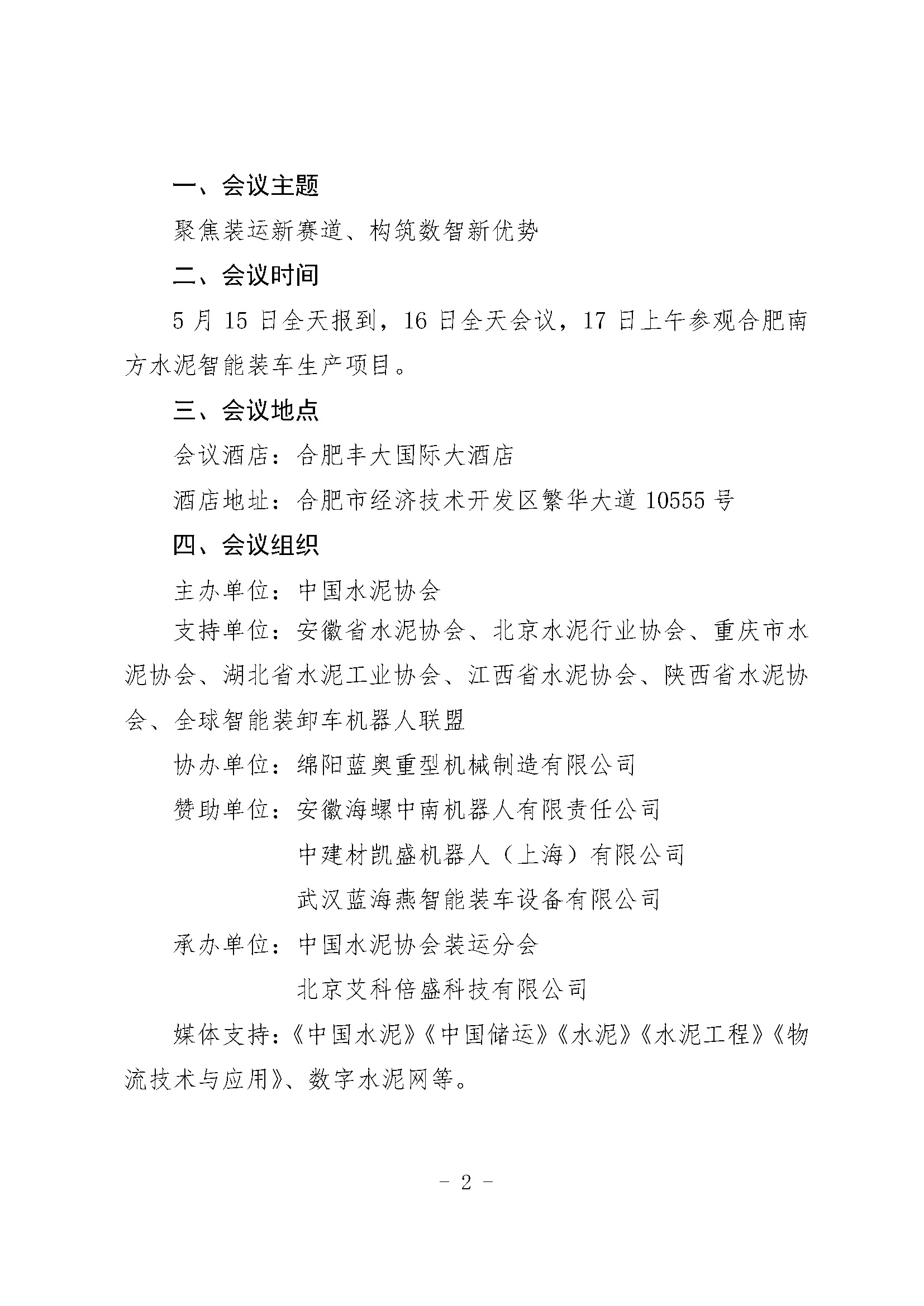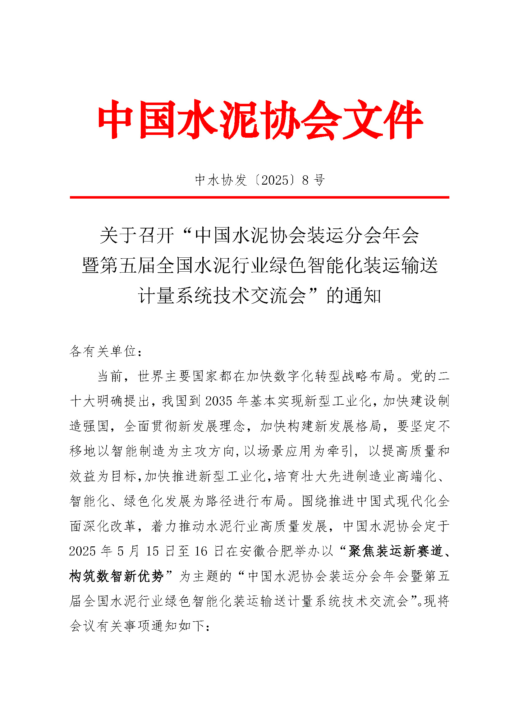 關于召開“中國水泥協會裝運分會年會暨第五屆全國水泥行業綠色智能化裝運輸送計量系統技術交流會”的通知