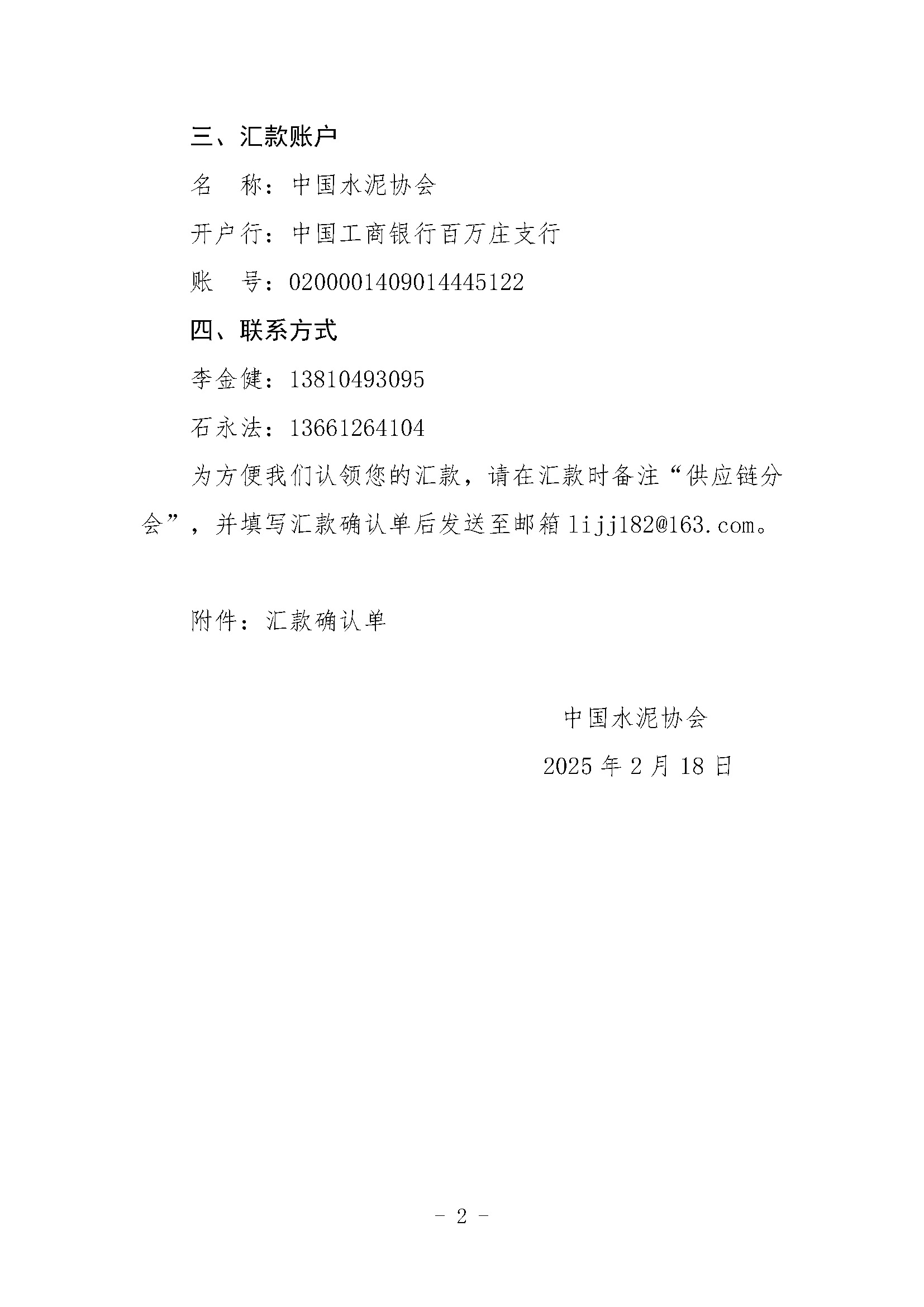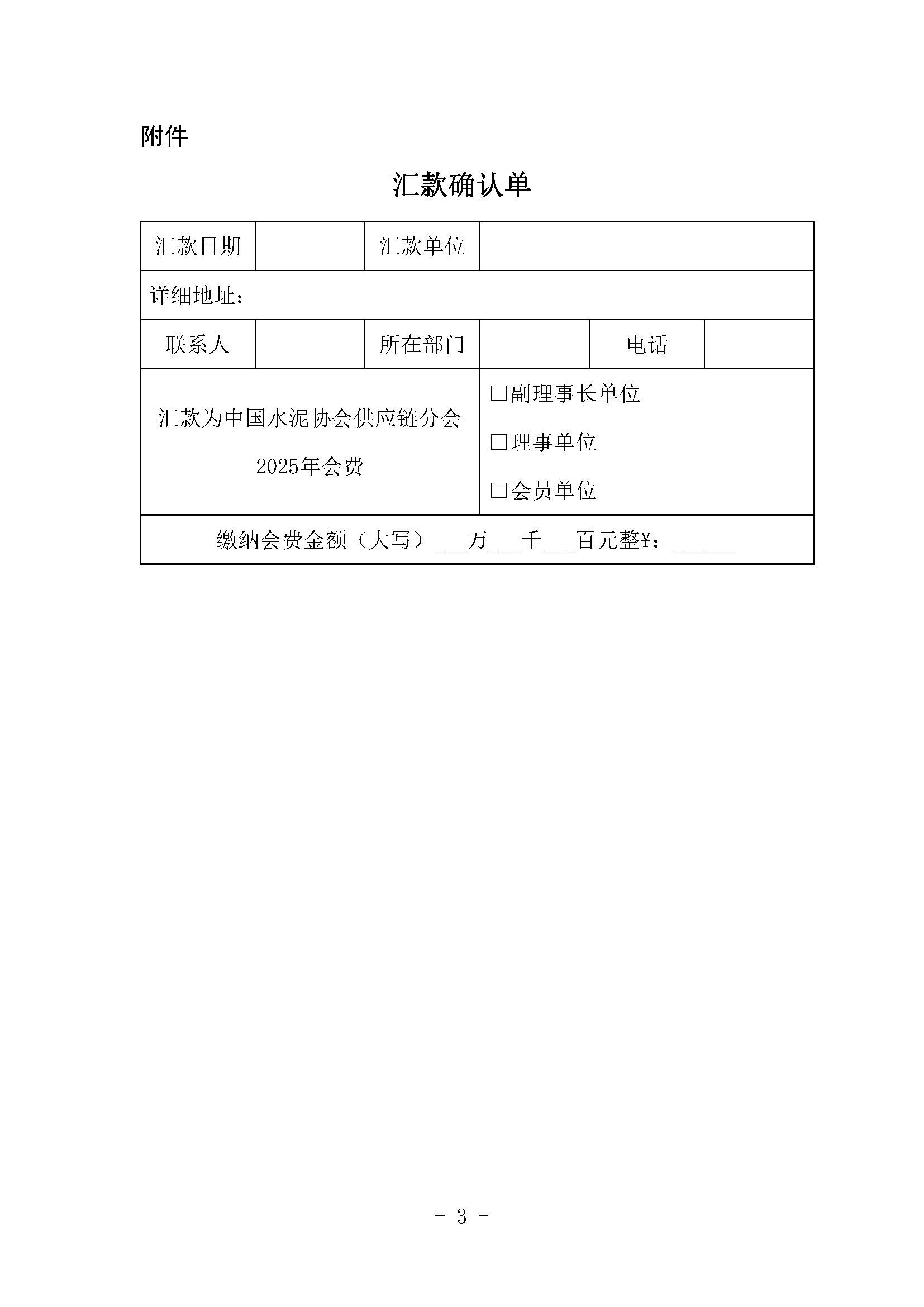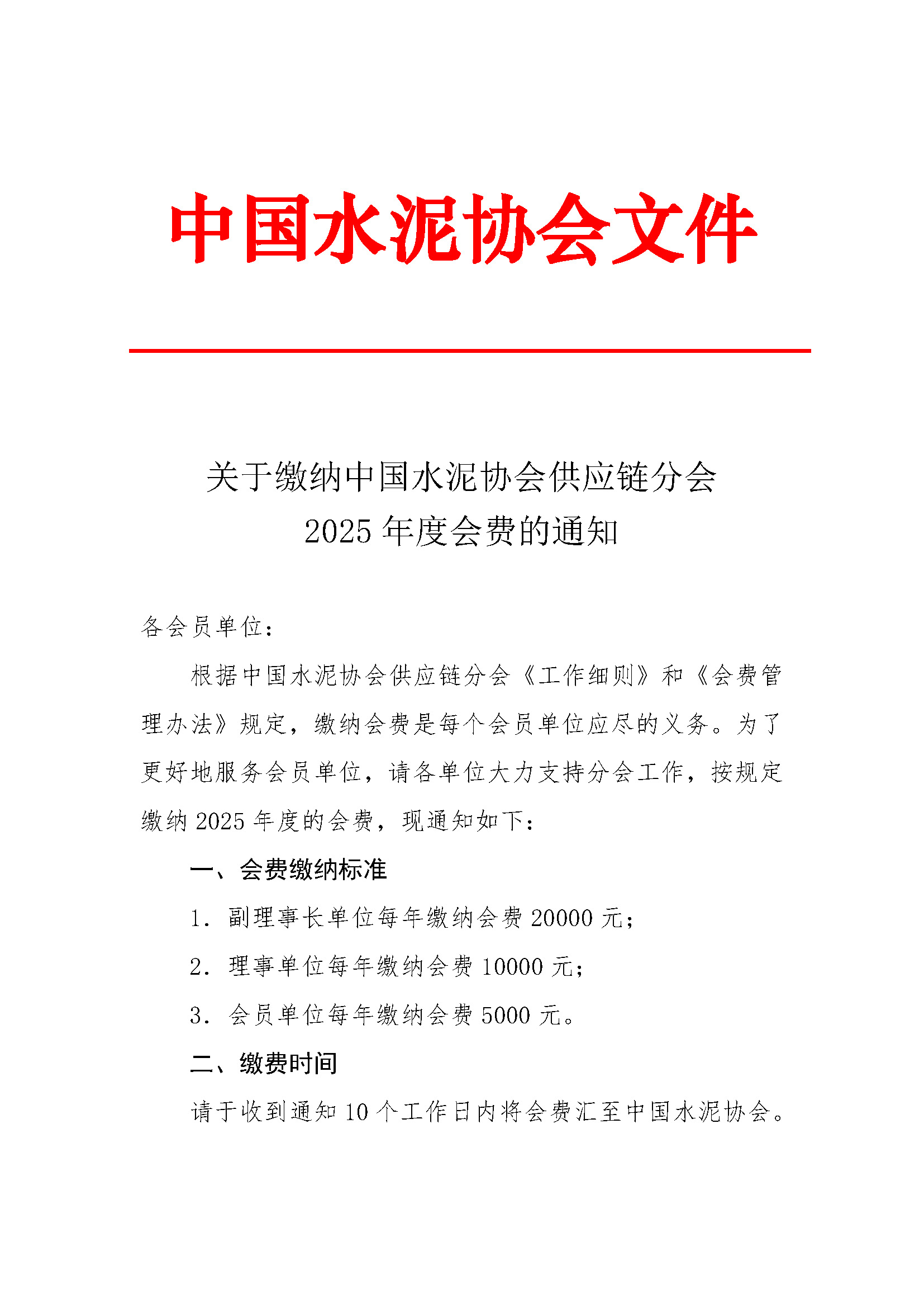 關于繳納中國水泥協(xié)會供應鏈分會2025年度會費的通知