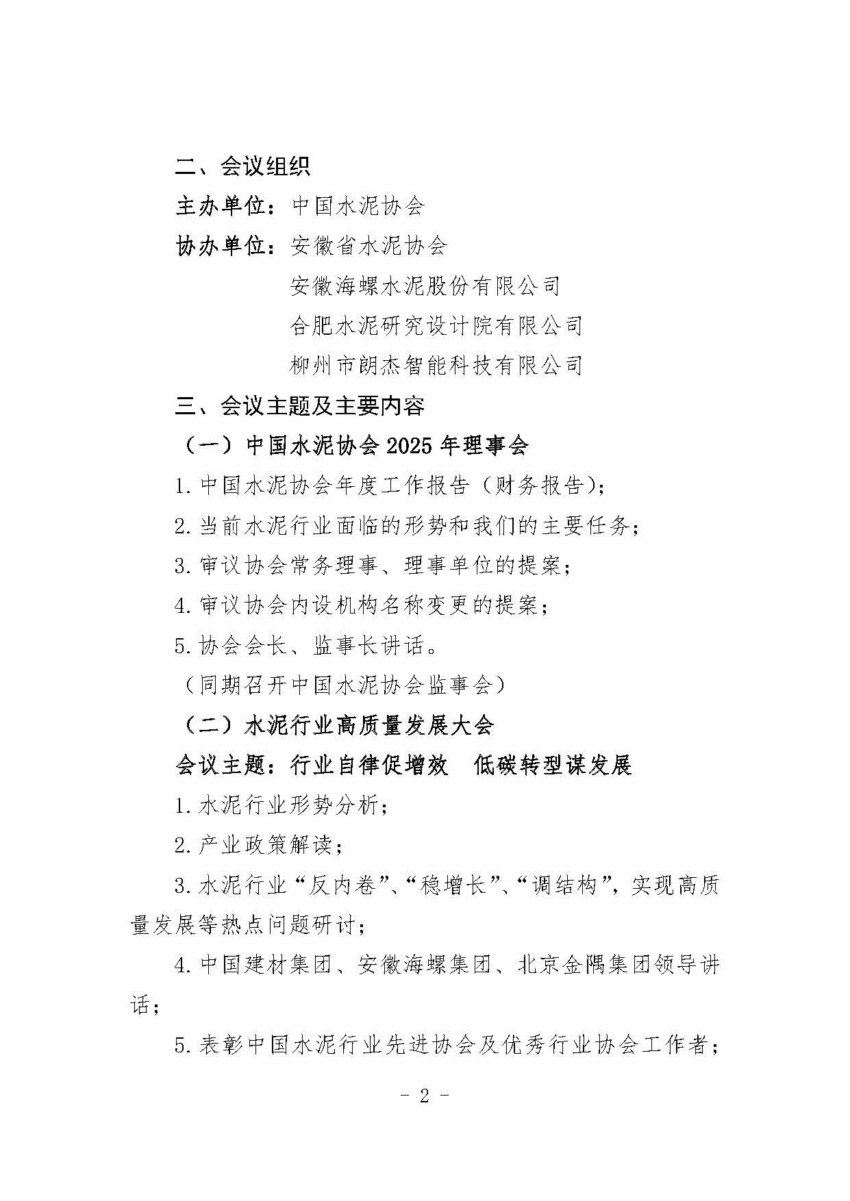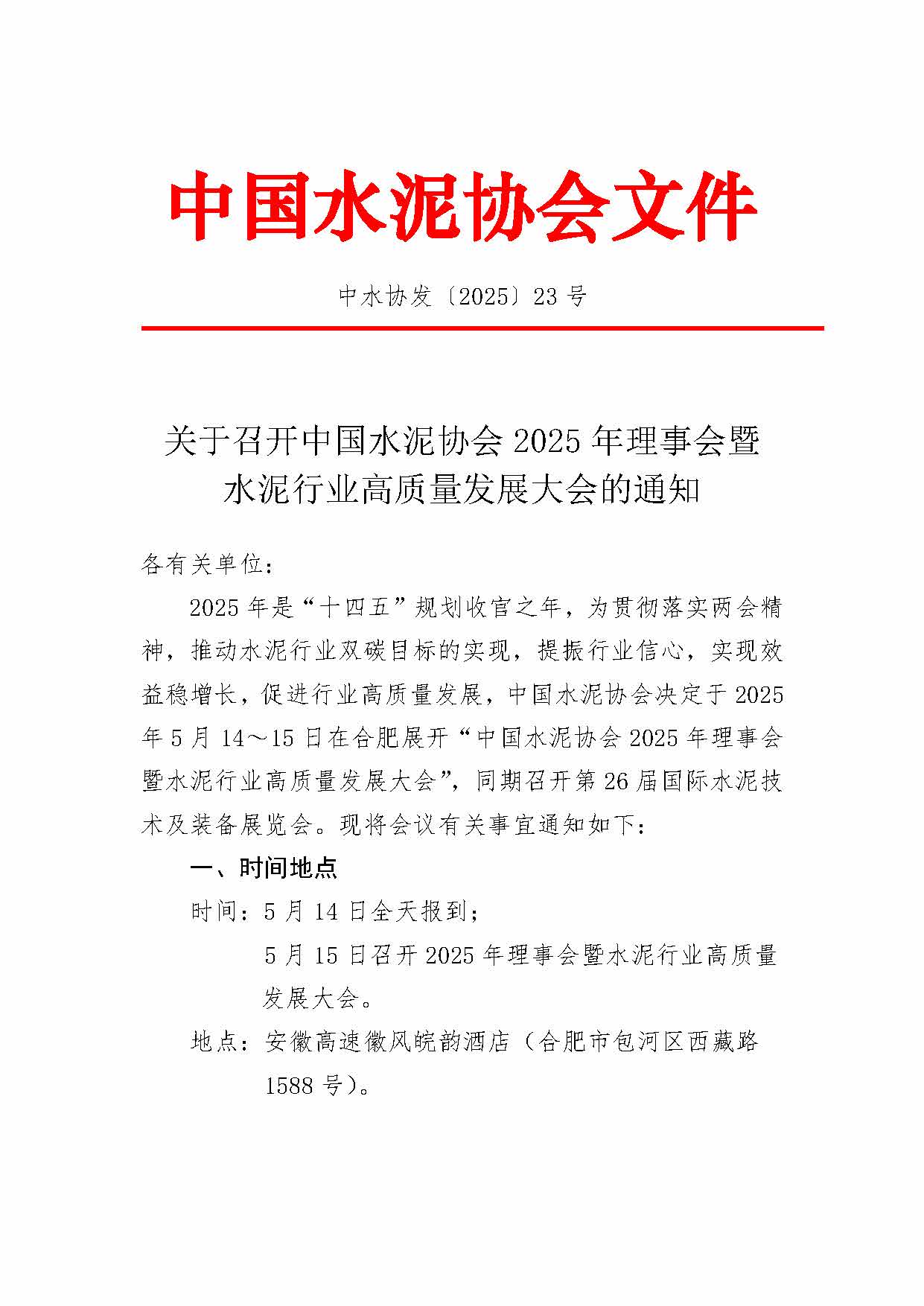 下載:關(guān)于召開中國水泥協(xié)會2025年理事會暨 水泥行業(yè)高質(zhì)量發(fā)展大會的通知