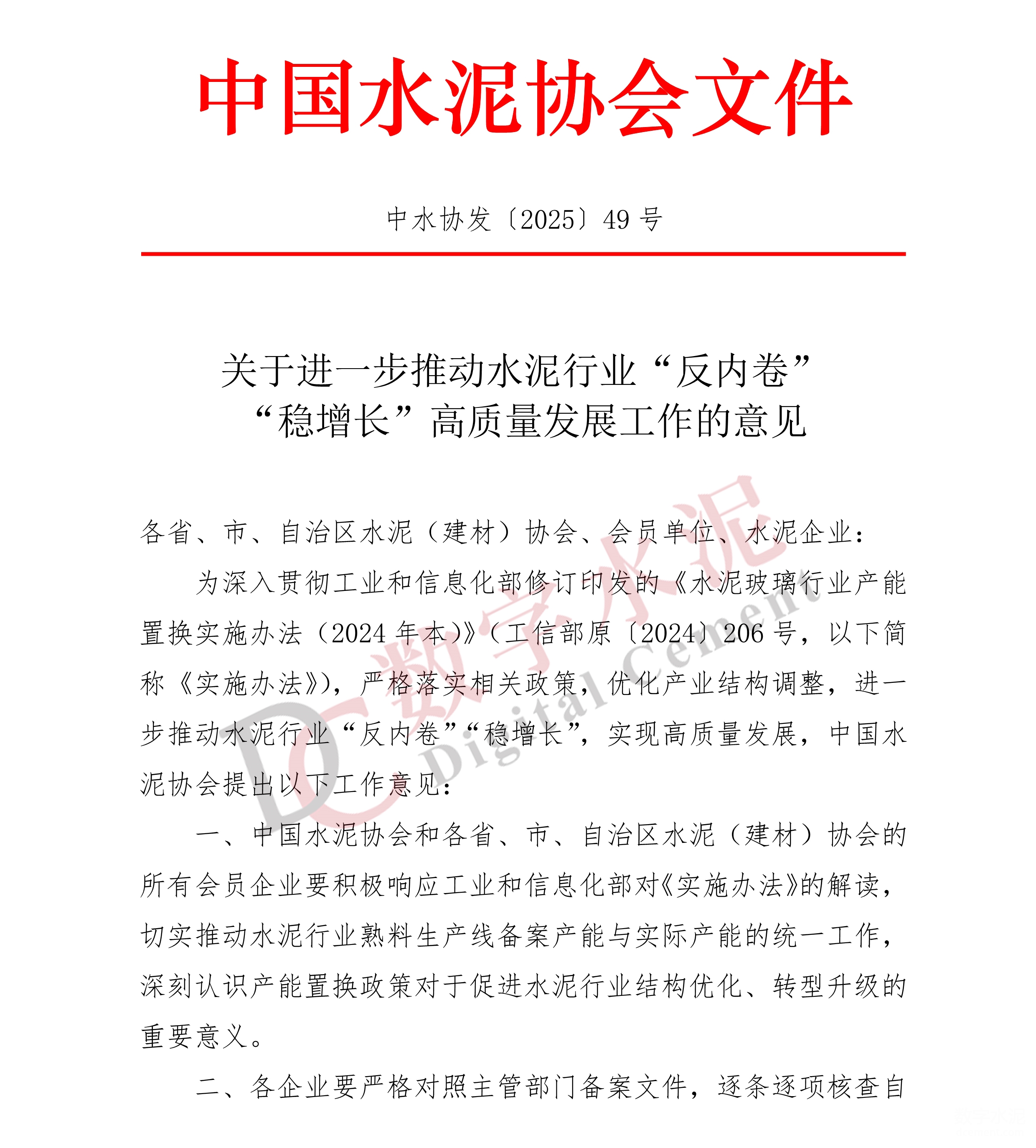 《關(guān)于進一步推動水泥行業(yè)“反內(nèi)卷”“穩(wěn)增長”高質(zhì)量發(fā)展工作的意見》