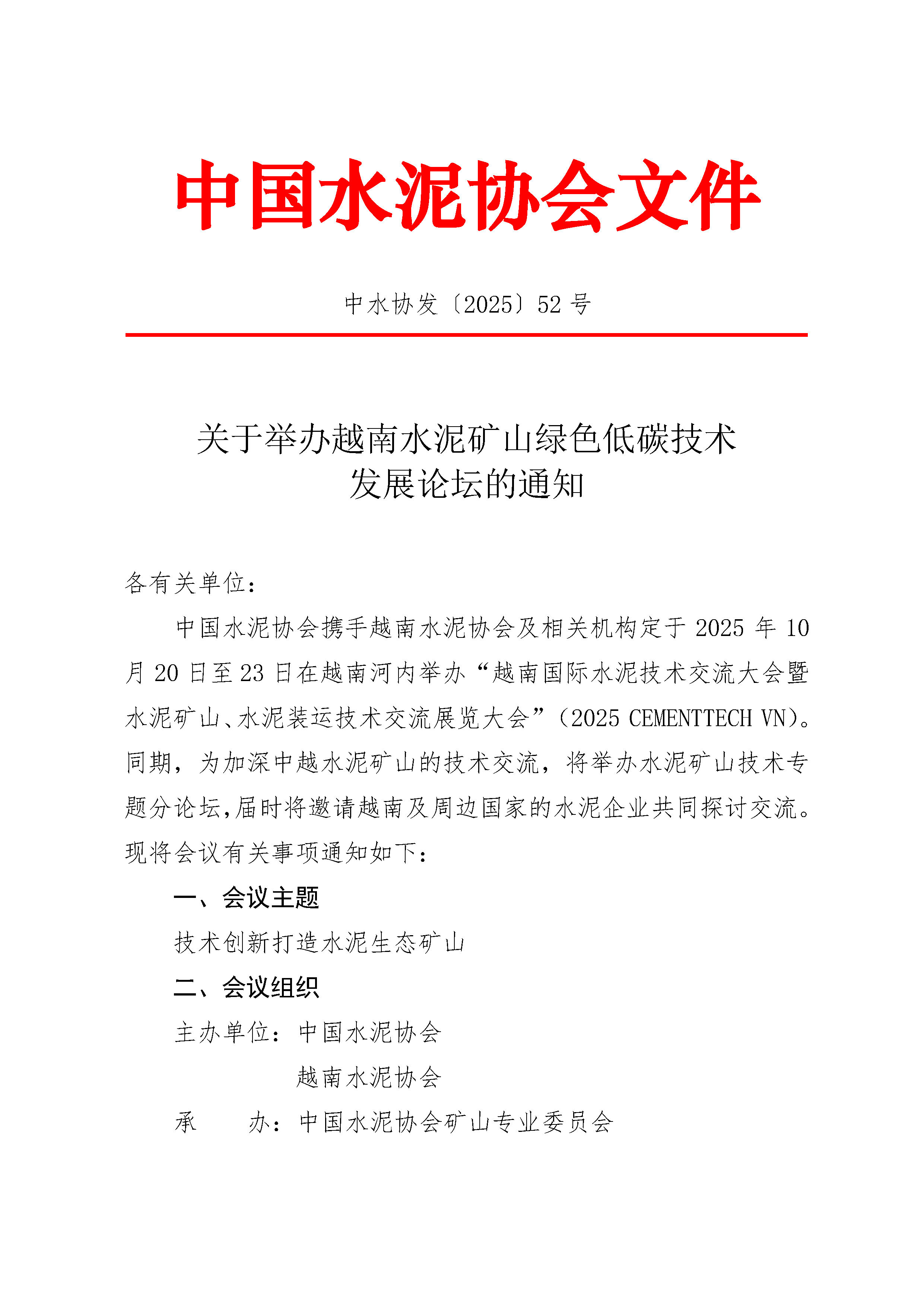 關于舉辦越南水泥礦山綠色低碳技術發(fā)展論壇的通知
