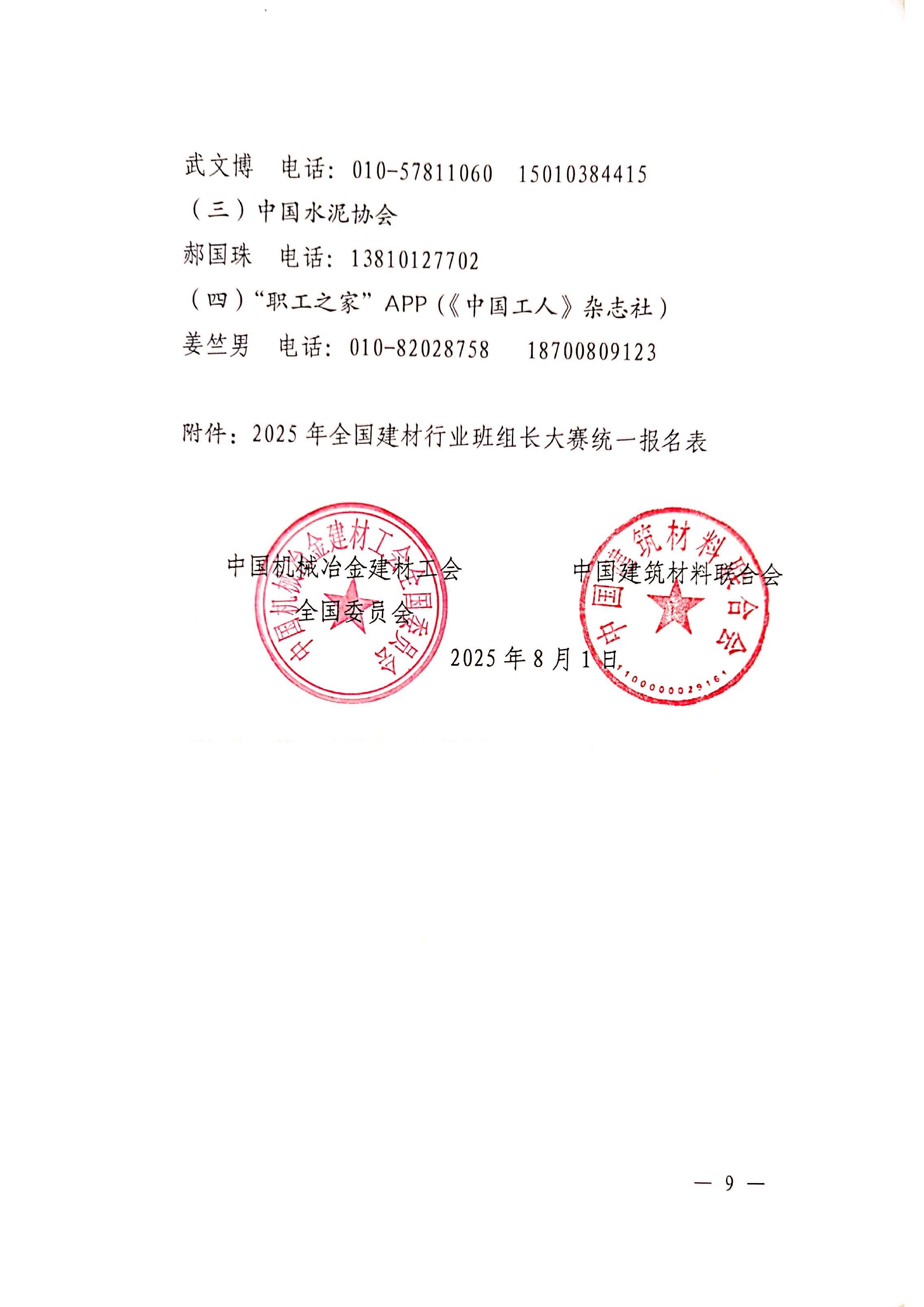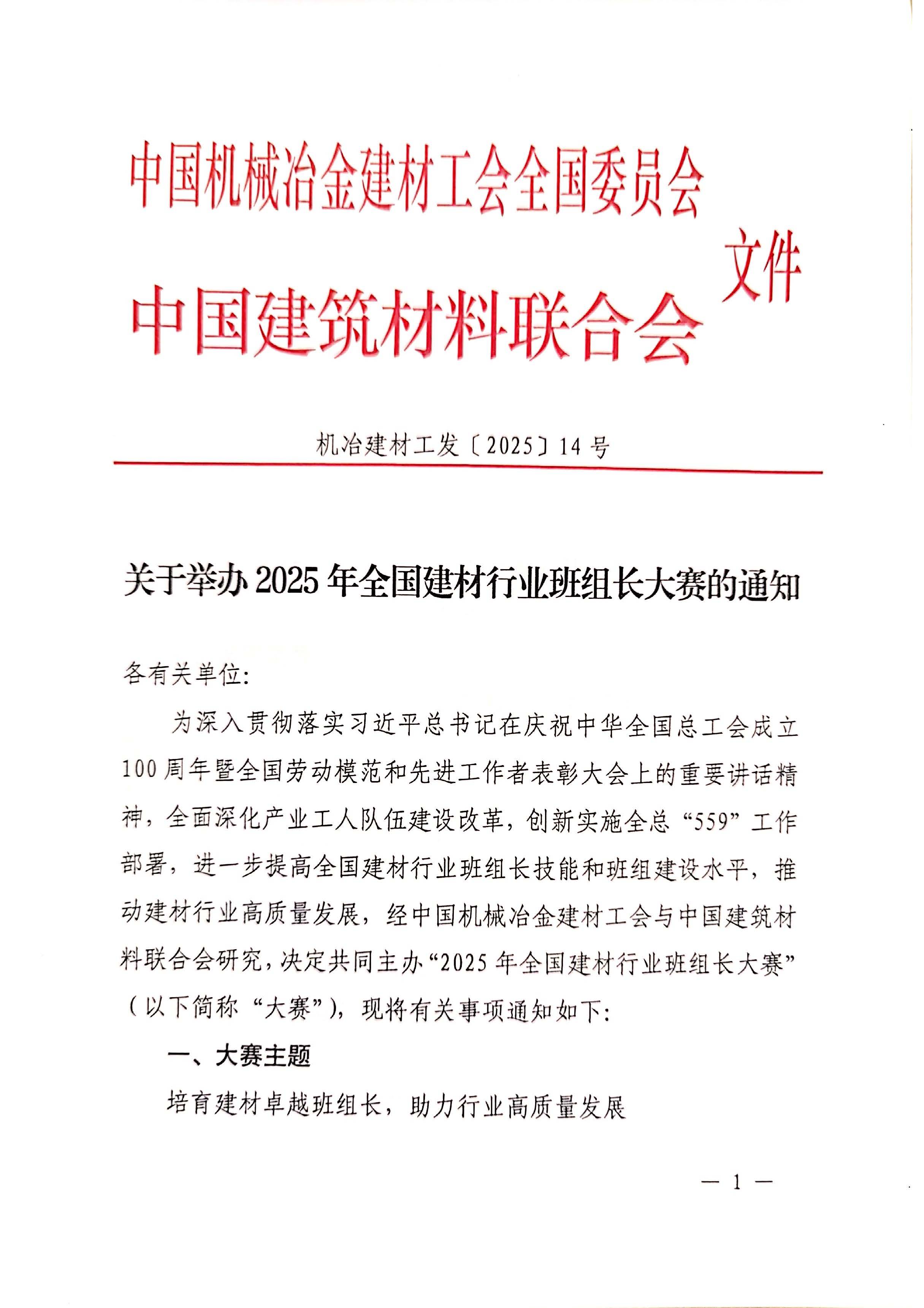 關(guān)于舉辦2025年全國(guó)建材行業(yè)班組長(zhǎng)大賽的通知