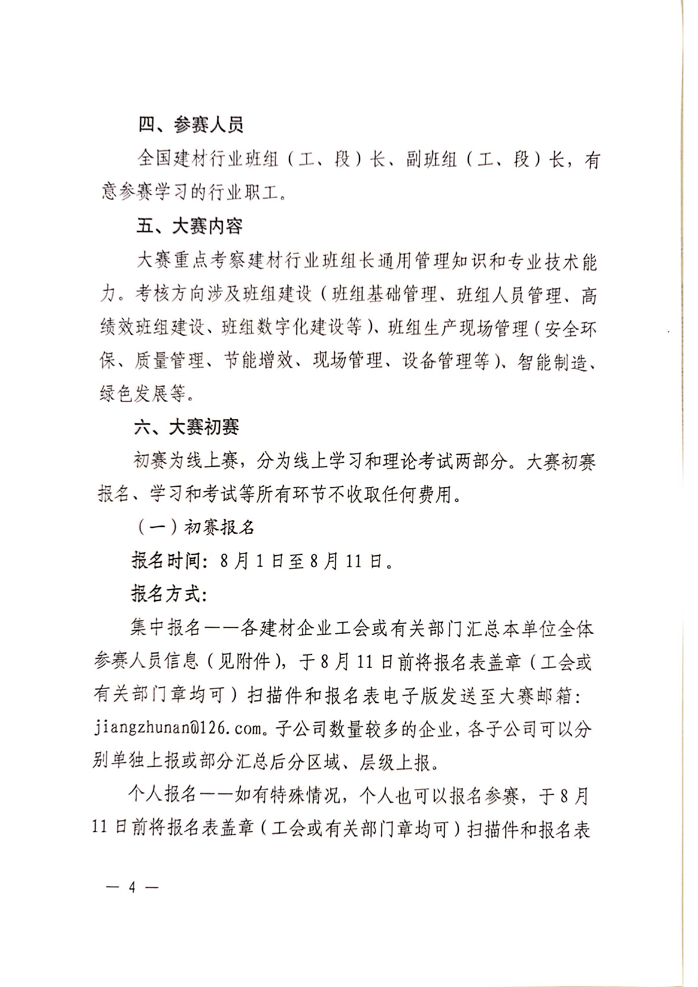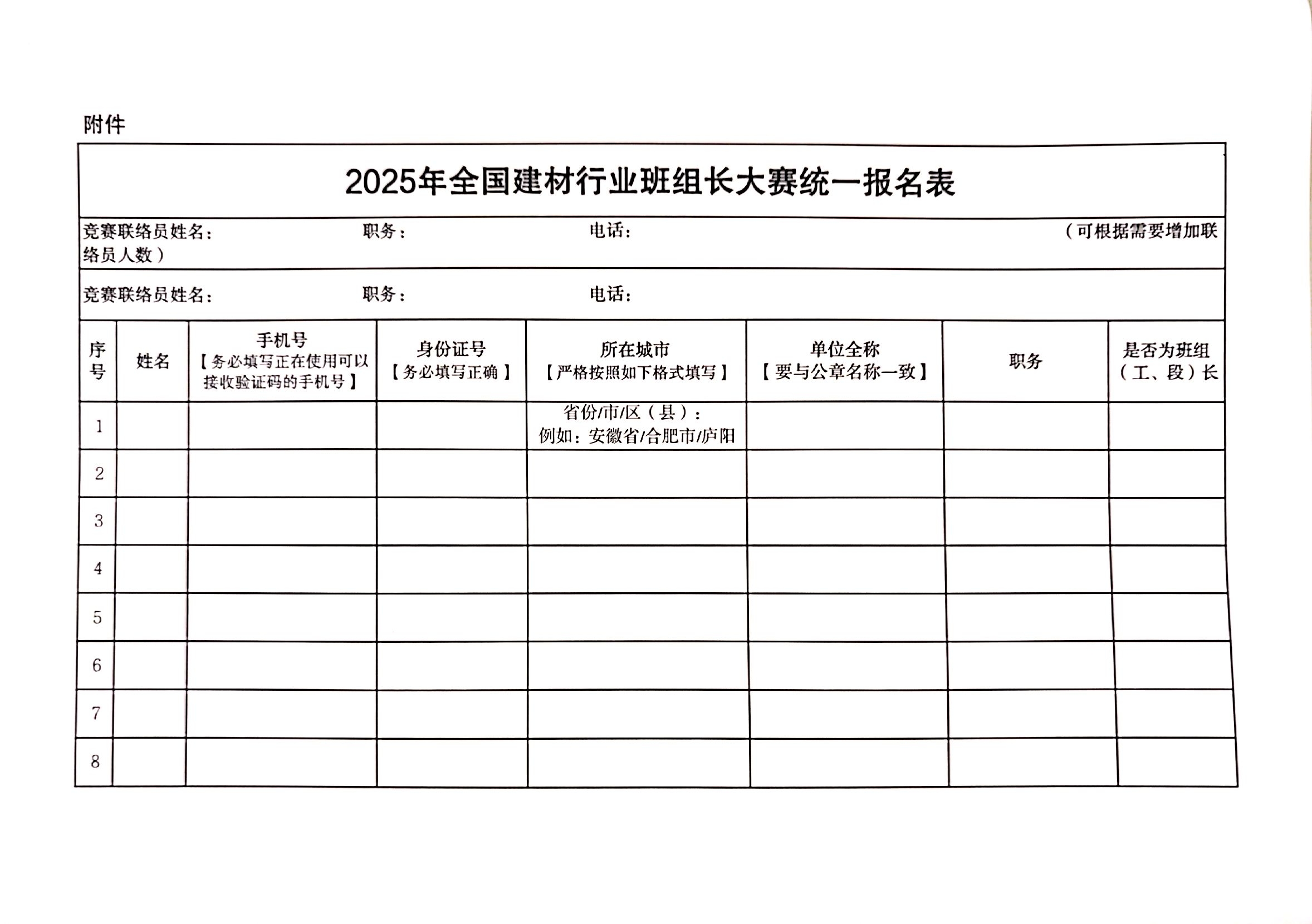 文件下載:關(guān)于舉辦2025年全國(guó)建材行業(yè)班組長(zhǎng)大賽的通知