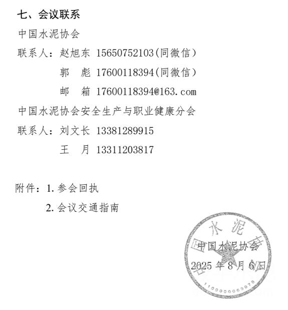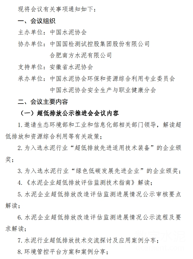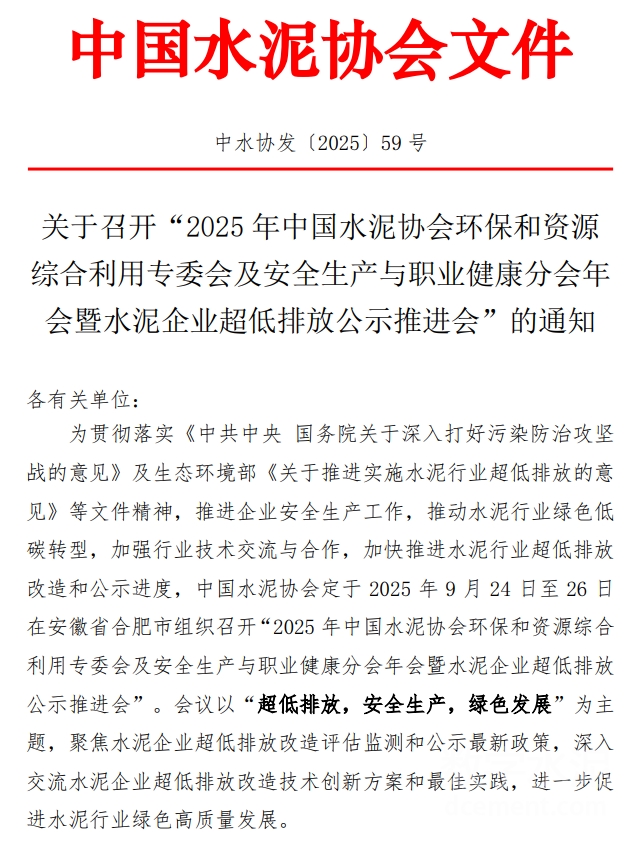 關于召開“2025年中國水泥協會環保和資源綜合利用專委會及安全生產與職業健康分會年會暨水泥企業超低排放公示推進會”的通知