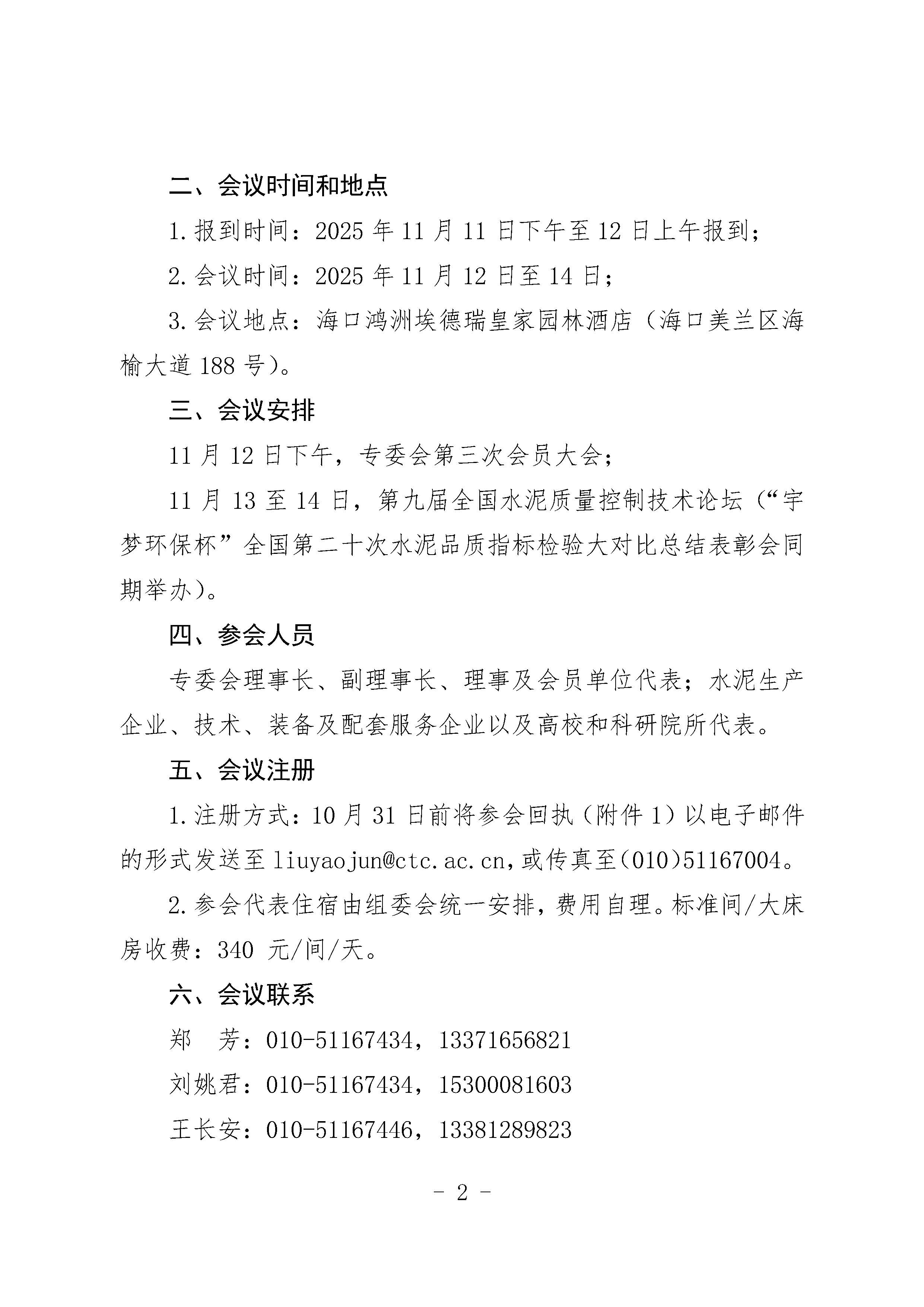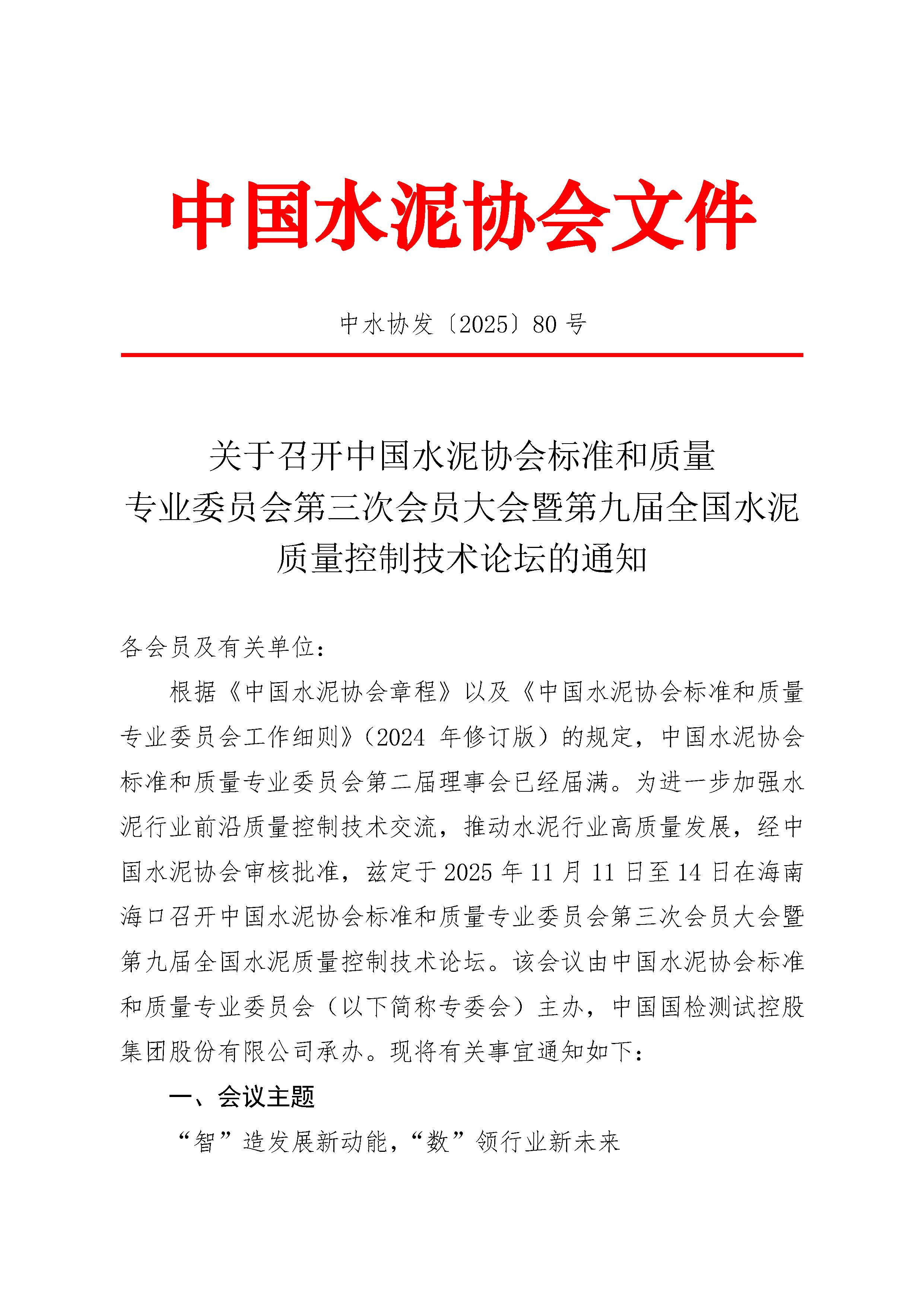 關于召開中國水泥協會標準和質量專業委員會第三次會員大會暨第九屆全國水泥質量控制技術論壇的通知