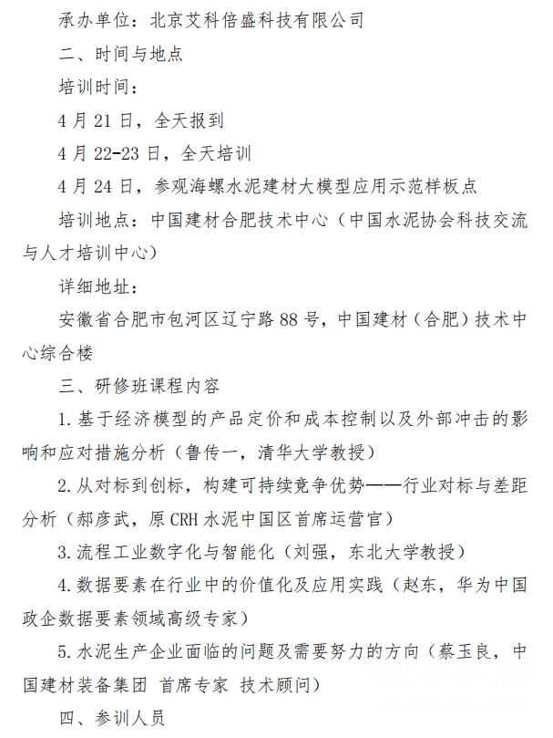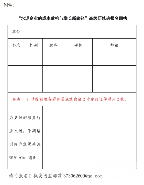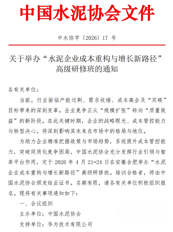 關于舉辦“水泥企業成本重構與增長新路徑”高級研修班的通知